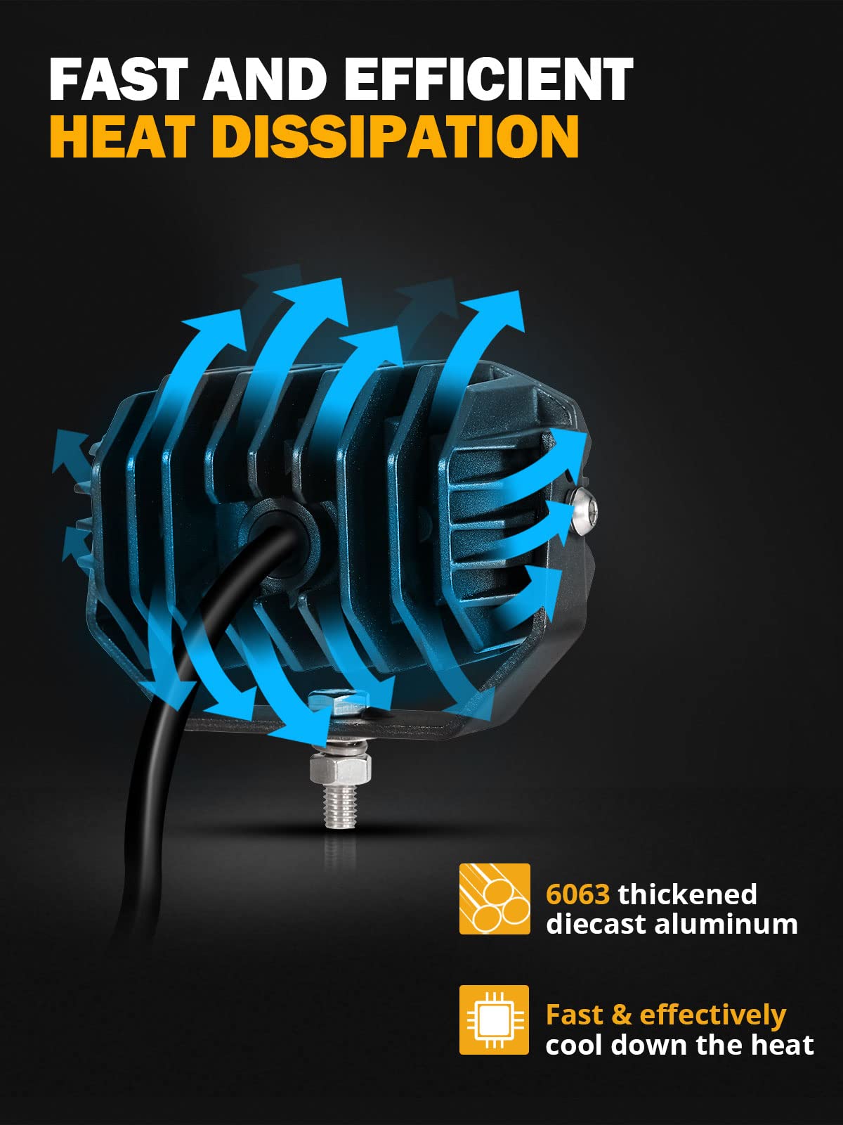 Auxbeam 4 Inch Amber Fog Light, 60W Square Pod With 5050 Led Yellow Spot Lens Beam Offroad Driving For Jeep Motorcycle Suv Truck