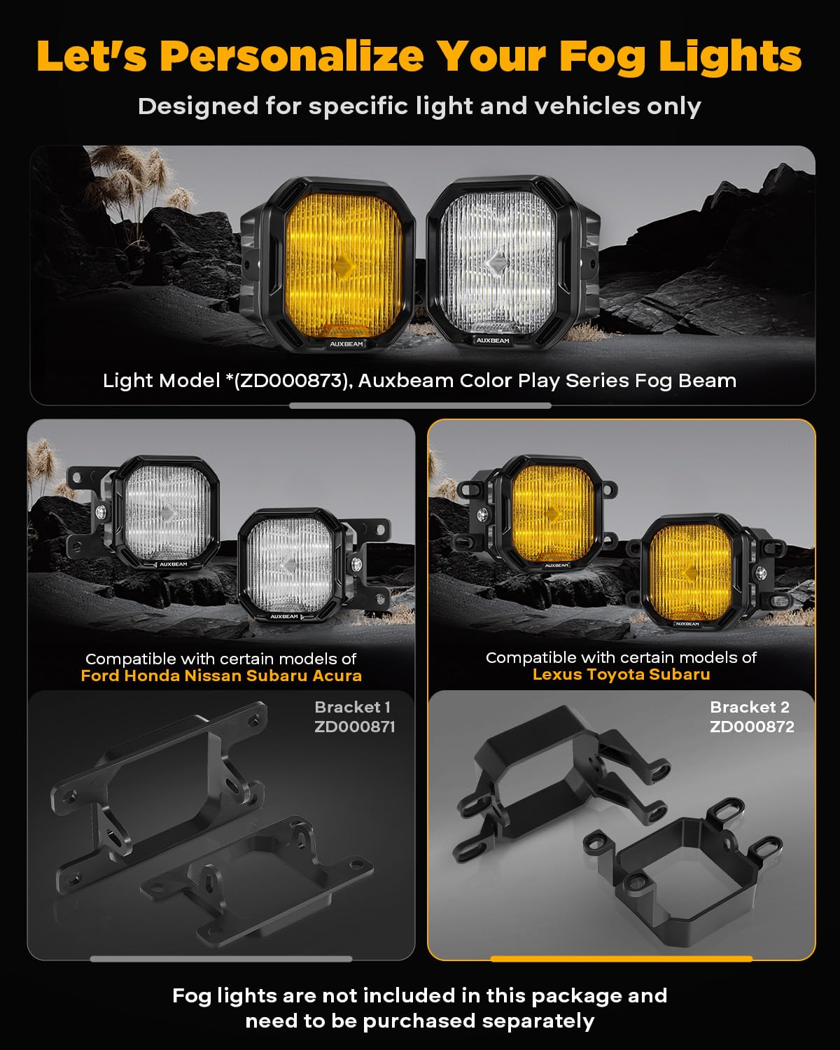 Auxbeam Color Play Series Fog Light Mounting Brackets, For Lexus Toyota Subaru Legacy, Includes Bracket & Adapter, Offroad Light