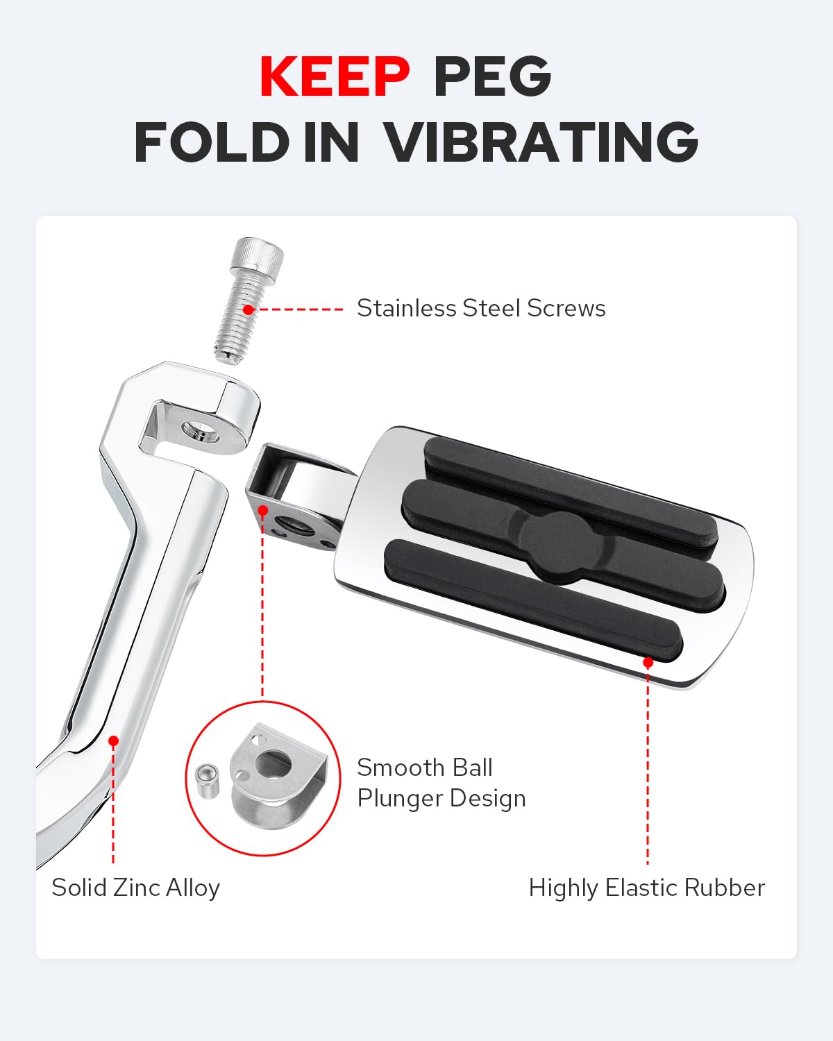 Benlari 1.25'' Highway Pegs 304 Stainless Steel Highway Footpegs,Adjustable Long Angled Highway Pegs Fit For Harley Touring Stre