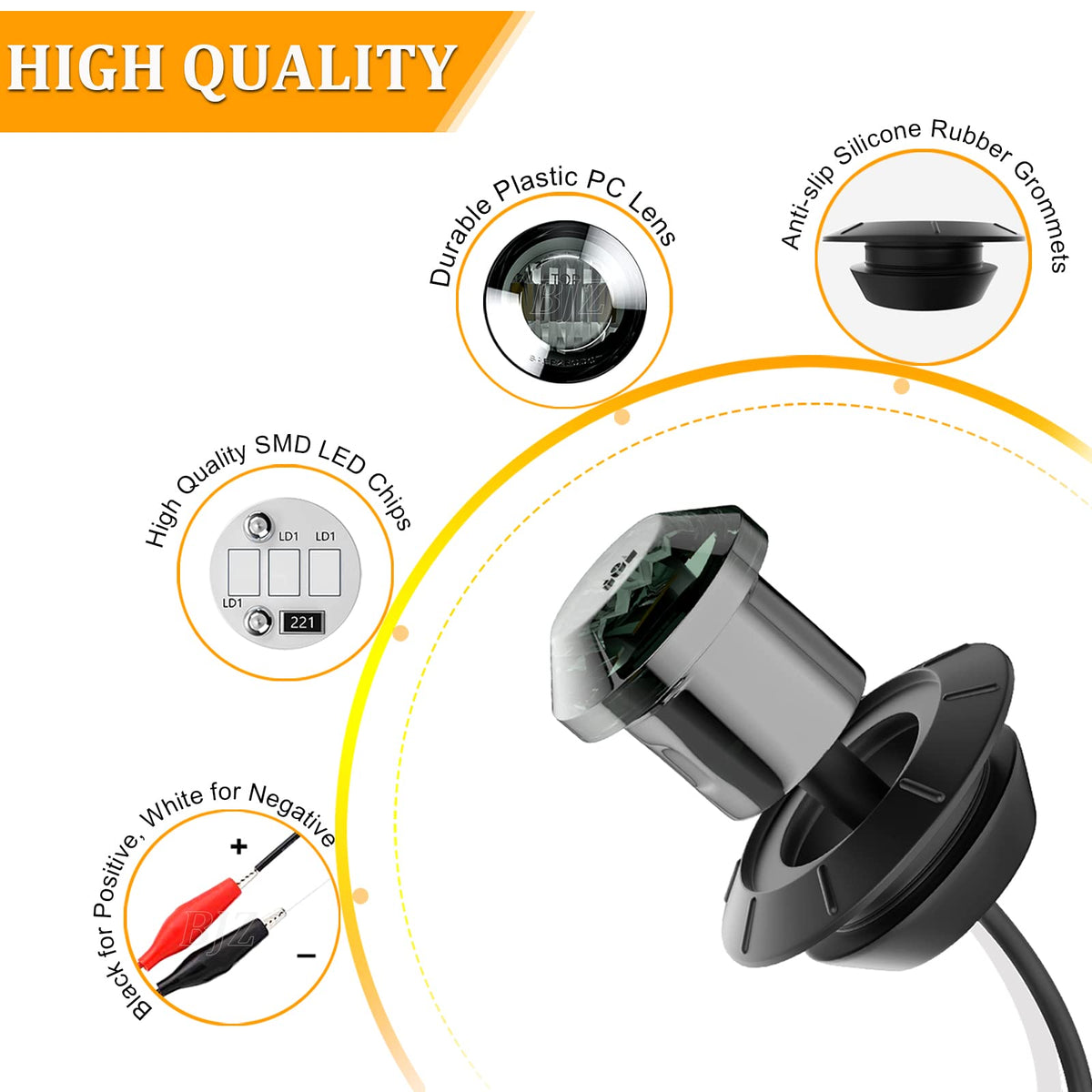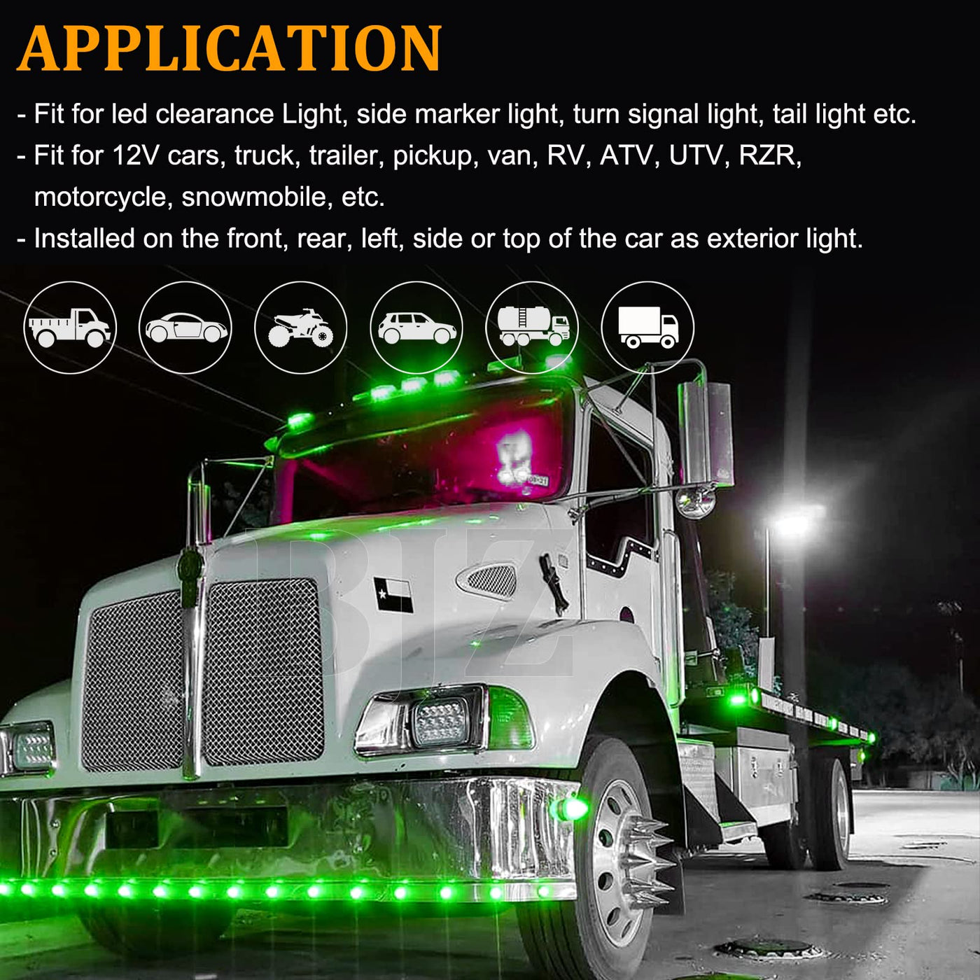 Bjz 10Pcs 3/4'' Round Led Trailer Clearance Marker Lights Green 12V Side Marker Front Rear Indicator Bullet Tail Light Waterproof W/ Smoked Lens & Grommet For Trailer Truck Atv Utv Rv Car Bus Pickupwide Application:Widely Used For Led Marker Lights, Side Marker Lights, Trailer Marker Lights, Truck Marker Lights, Stop Lights, Brake Lights, Reverse Lights, Turn Signal Lights, Stop Turn Lights, Running Lights, Tail Lights, Identification Lights, Front Rear Indicator Lights, Decorative Lights, Warning Lights, Emergency Lights, Led Rock Lights, Underglow Lights, Bumper Lights, Step Lights, Top Cab Roof Lights And More.Universally Fit For 12V Golf Cart, Trailer, Truck, Pickup, Bus, Car, Van, Atv, Utv, Rv, Rzr, Suv, Lorry, Caravan, Camper, Wrangle, F350, F450, F550, Motorcycle, Motorhome, Snowmobile And More.Outstanding Features:1. Ip68 Fully Sealed Waterproof, Can Be Used Both On Water And Underwater. Even Immersed In Water, It'S Super Bright. Submersible Led Side Light Is Worth Having!2. High-Quality Material, Made Up Of Reinforced Pc Lens And Anti-Skid Rubber Grommets, Shock And Impact Resistance; With 9 Inch Long 22Awg Wire, Make Your Installation Easy And Fast.Specifications:Light Type: Led Side Marker Clearance Lightshape: Roundlight Color: Greenlens Color: Smokednumber Of Led: 3 Leds 2835Smdvoltage: Dc 12Vlumen: 60Lmwaterproof Level: Ip68Mounting Hole Size: 0.75''Light Outer Diameter: 1.06''X1.06''X0.9''Light Inner Diameter: 0.78''X0.78''X0.9''Wire Length: 9''Material: Pc Lens + Rubber Grommetsworking Hours: 50,000 Hrseasy To Installscrewless Flush Mounting, The Mounting Hole Size Is 3/4 ''(0.75''). 2-Wire Connection, Black Is Positive And White Is Negative.