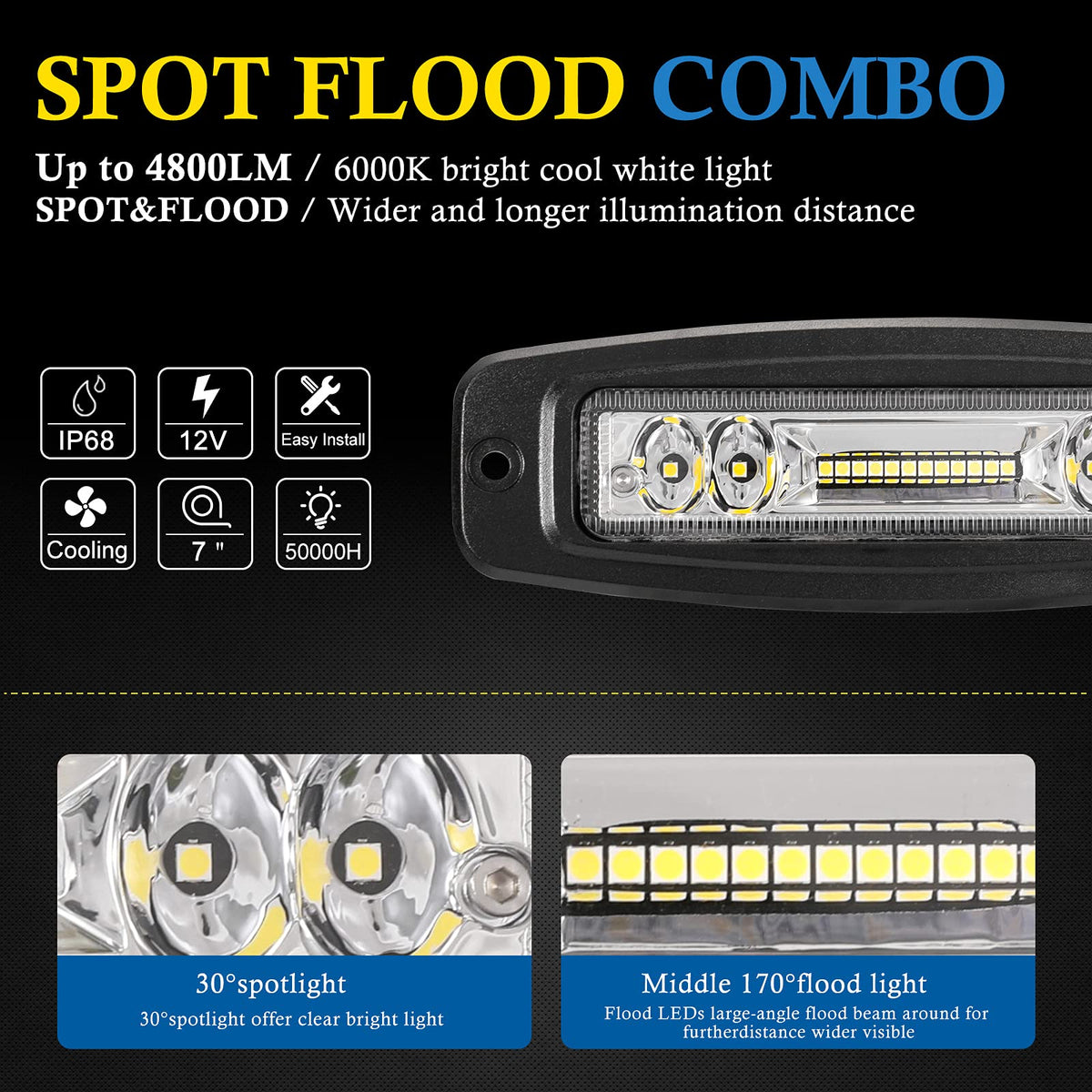 7'' Flush Mount LED Light Pods, BUNKER INDUST 2 Pcs 4800LM Off Road LED Work Lights Bar Flood Spot Combo Beam Driving Fog LED Bumper Lights for Truck Golf Cart UTV ATV