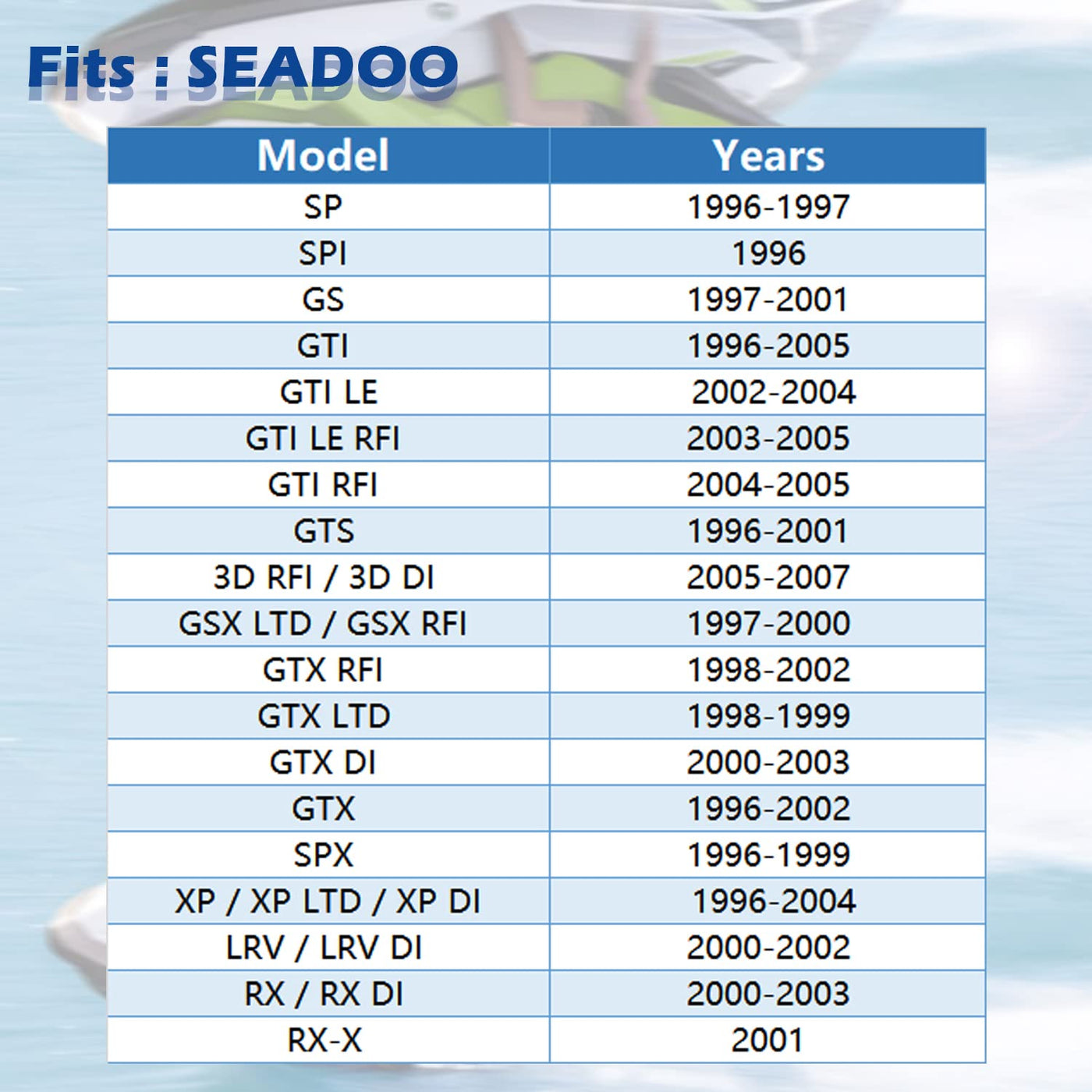 Compatibility - Fits for Sea-Doo SP 1996-1997, SPI 1996, GS 1997-2001, GTI 1996-2005, GTI LE 2002-2004, GTI LE RFI 2003-2005, GTI RFI 2004-2005, GTS 1996-2001, 3D RFI / 3D DI 2005-2007, GSX LTD / GSX RFI 1997-2000, GTX RFI 1998-2002, GTX LTD 1998-1999, GTX DI 2000-2003, GTX 2000-2002, SPX 1996-1999, XP / XP LTD / XP DI 1996-2004, LRV / LRV DI 2000-2002, RX / RX DI 2000-2003, RX-X 2001 | OEM Replacement - Replace for 272000042, 272000777, 272000064, 293300032 | Function - With great tightness and sealing, it can stop your motorboat from taking in water, and no more leaks. Easy to use and install, no complicated steps and skills are needed, directly replaced, easy to use, save your time and energy. | Material - It is made of high-quality steel, rubber and graphite, which has good high temperature resistance, wear resistance and corrosion resistance. Graphite has a high rebound coefficient and can play its role well in various environmental conditions. | Package Includes - Shaft Boot 272-000-041 / 272-000-184 / 272-000-167; Drive Shaft C-Clip 272-000-135; Support Ring 272-000-064; Carbone Ring 272-000-042 / 272-000-777; Qty.2 O-Ring 293-300-032.