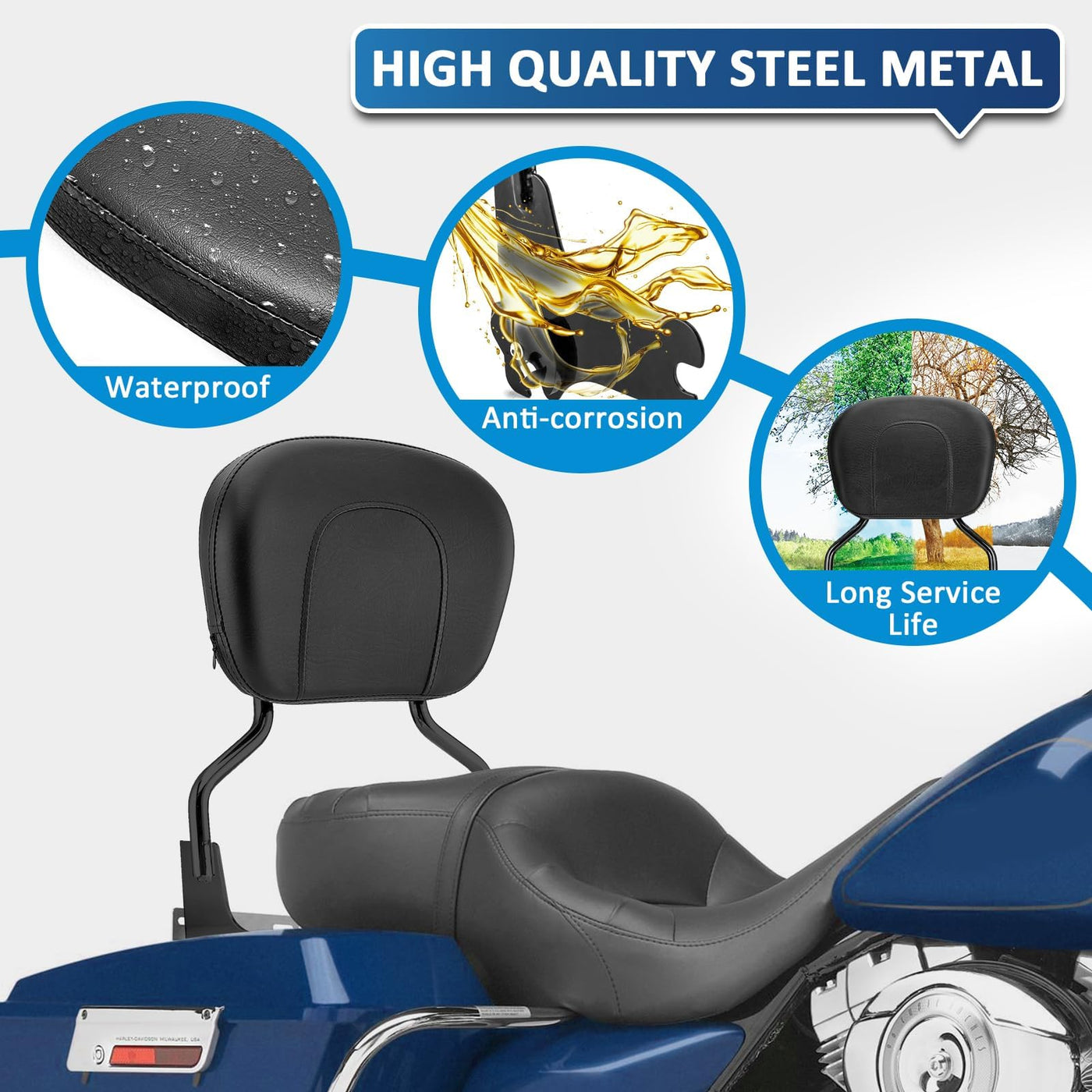 Detachable Gloss Black Sissy Bar w/Passenger Backrest Pad & 4-Point Docking Hardware Kit Compatible with Harley Davidson Touring