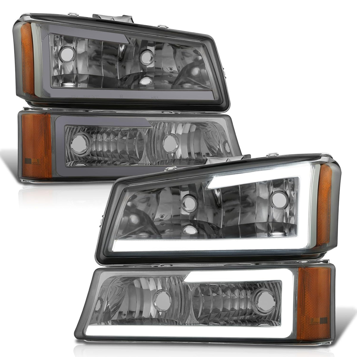 Dna Motoring 3D Led Drl Headlight Bumper Lamp Set Compatible With 03-06 Silverado 1500-3500 1500Hd 2500Hd / Avalanche 1500 2500,