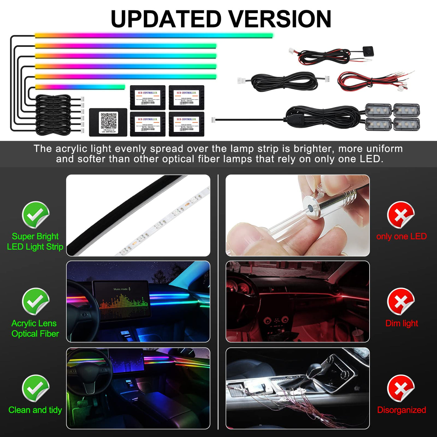 Dreamcolor Acrylic Interior Car Led Strip Light With Wireless App, Rgb 10 In 1 With 175 Inches 593 Leds Fiber Optic Ambient Ligh
