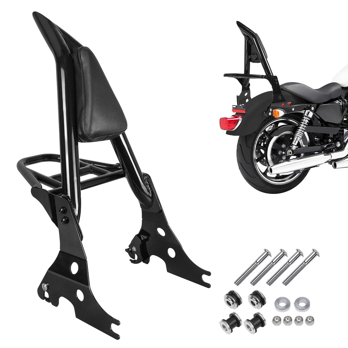 Fitment About The Backrest Sissy bar With Luggage Rack: Compatible With For 2004-2010 Sportster 883 Custom XL883C / Sportster 883 Police XL883P / 2005-2007 Sportster 883R XL883R Compatible With For 2004-2008 Sportster 883 XL883 / 2004-2009 Sportster 883 XLH883 Compatible With For 2005-2010 Sportster 883 Low XL883L / 2009-2014 Sportster 883 Low Police XL883LP / 2011-2020 Sportster 883 Super Low XL883L Compatible With For 2005-2011 Sportster 883 Roadster XL883R / 2012-2017 Sportster 883 Roadster XL883R / 2009-2022 Iron 883 XL883N Compatible With For 2004-2020 Sportster 1200 Custom XL1200C / 2011-2014 Sportster 1200 Custom Police XL1200CP Compatible With For 2004-2009 Sportster 1200 Roadster XL1200R / 2007-2012 Sportster 1200 Nightster XL1200N Compatible With For 2006-2011 Sportster 1200 Low XL1200L / 2014-2019 Sportster 1200 Super Low XL1200T Compatible With For 2008-2010 Sportster 1200 XR1200 / 2010-2012 Sportster 1200 XR1200X / 2018-2021 Iron 1200 XL1200NS Compatible With For 2008,2013 Sportster 1200 Custom Anniversary XL1200C / 2012-2016 Seventy Two XL1200V Compatible With For 2010-2022 Forty Eight XL1200X / 2018-2019 Forty Eight Special XL1200XS Feature: 1.The backrest set is made of high quality heavy-duty metal and soft PU Leather,sturdy and wear resistant,not easy to scratch or paint off. 2.The backrest pad come with soft sponge,provide passengers with soft enough back support.The luggage rack can support and store your travel items. 3.Black finish promise no scratch on surface,easy to install and remove.