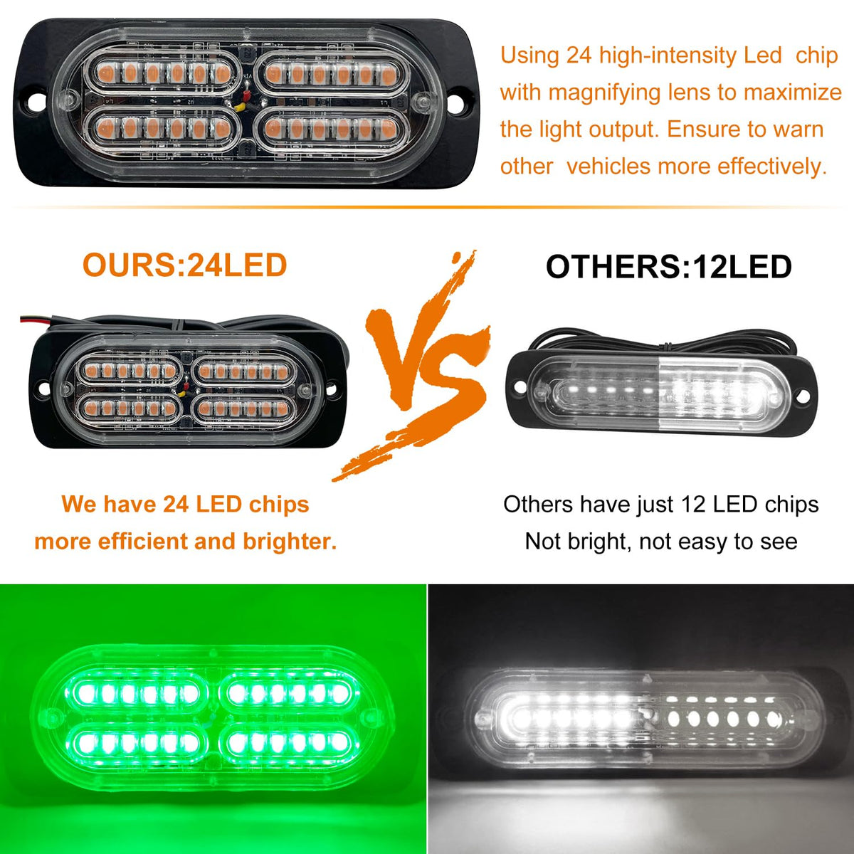 Ease2U E 12-24V 24-Led Super Bright Led Emergency Strobe Lights Warning For Cars Trucks Vehicle Suv Caution Hazard Construction