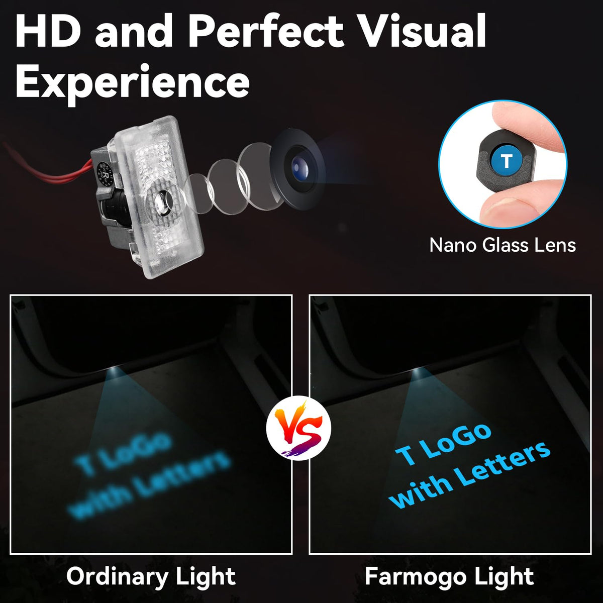 Farmogo Door Lights Logo Projector Puddle Lights Ultra-Bright Welcome Step Light, Never Fade Tesla Puddle Lights Compatible With