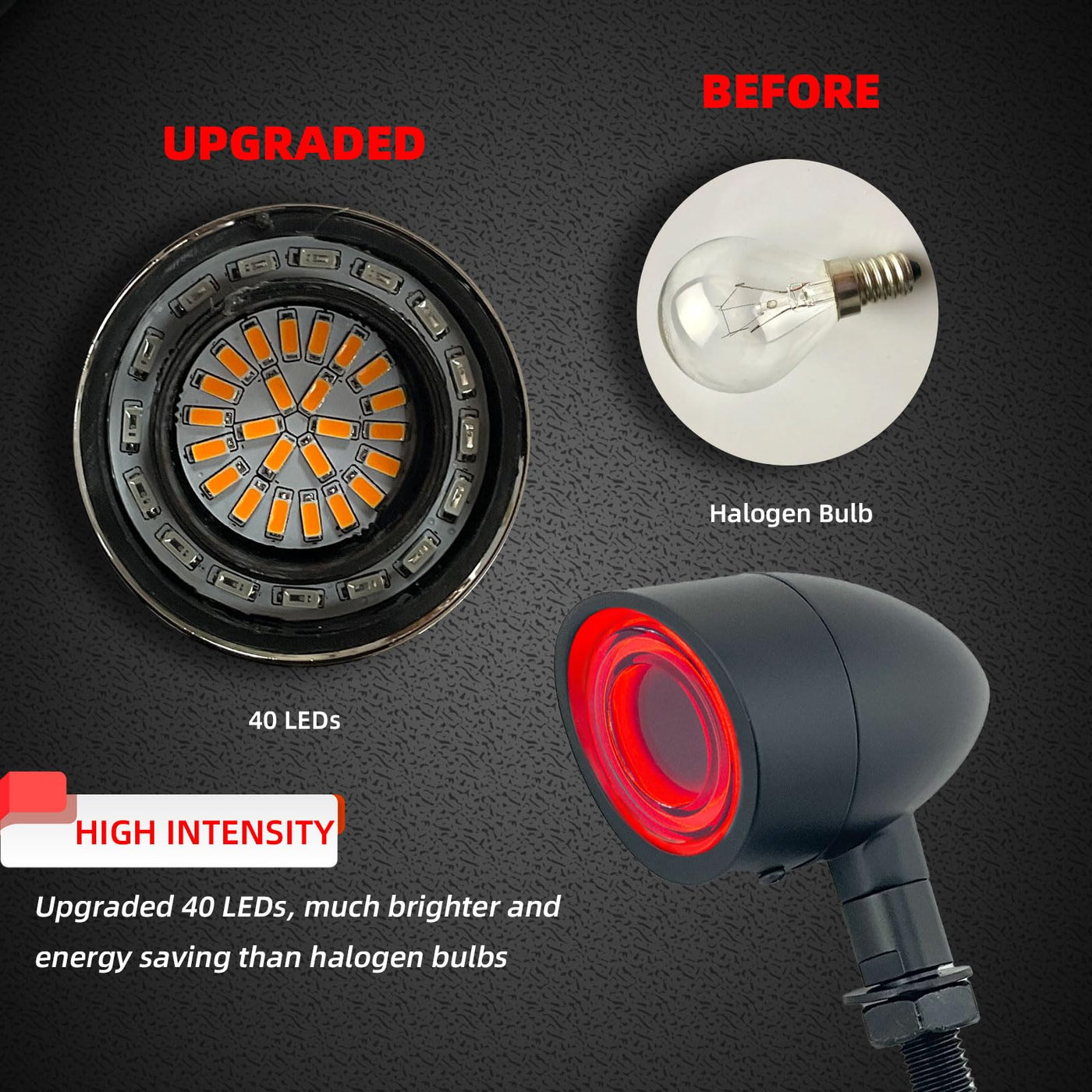 Fatecim 2X Motorcycle Led Bullet Tail Lights Turn Signals Running Brake Lights With Visor Motorbike Taillights Rear Blinkers Indicators For Bobber Harley Honda Yamaha Suzuki Kawasaki Chopper Black