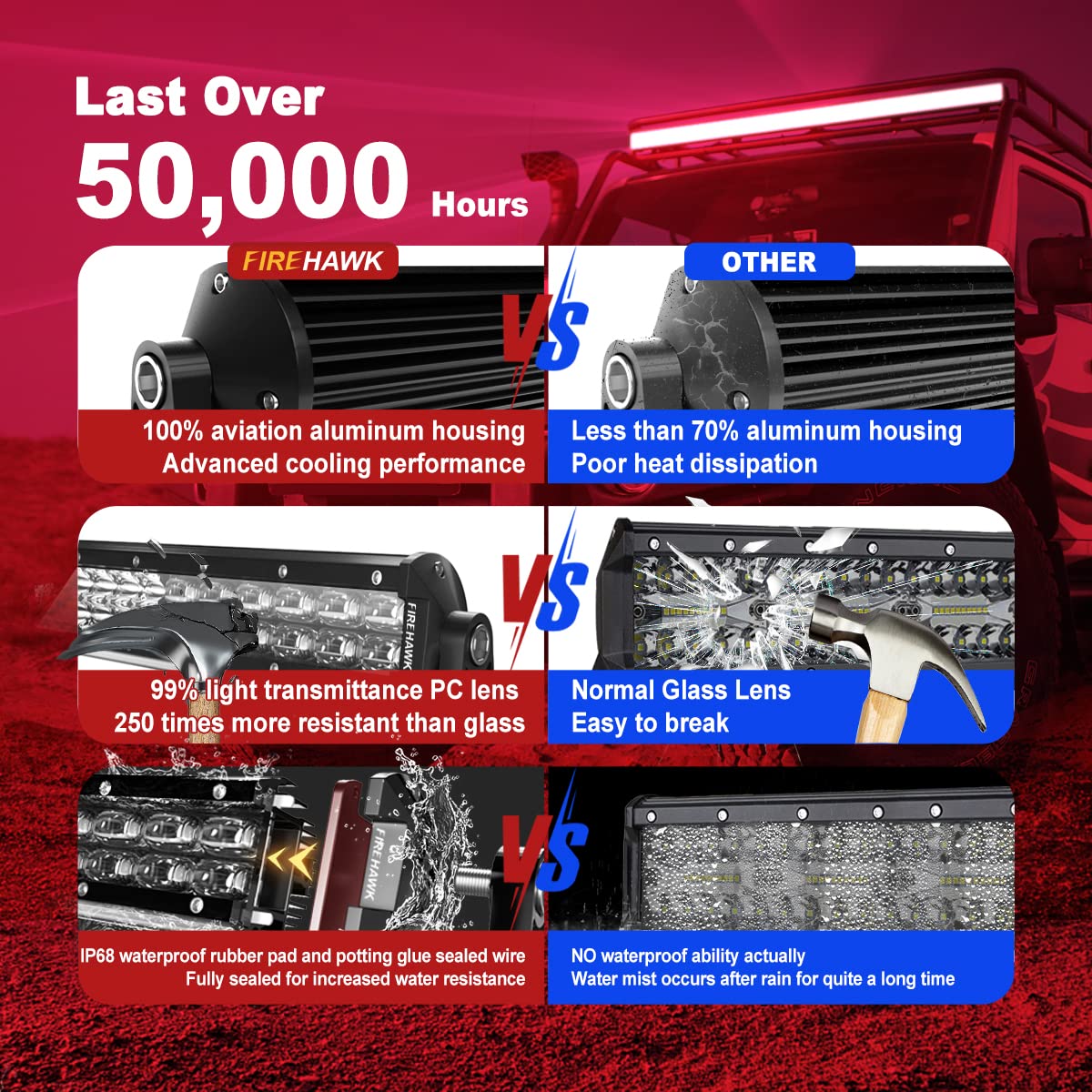 Firehawk Led Light Bar 20 Inch 50,000Lm, 2025 New Japanese L-A-B Chips, Spot Flood Combo Beam, Driving Off Road Fog Work For Tru