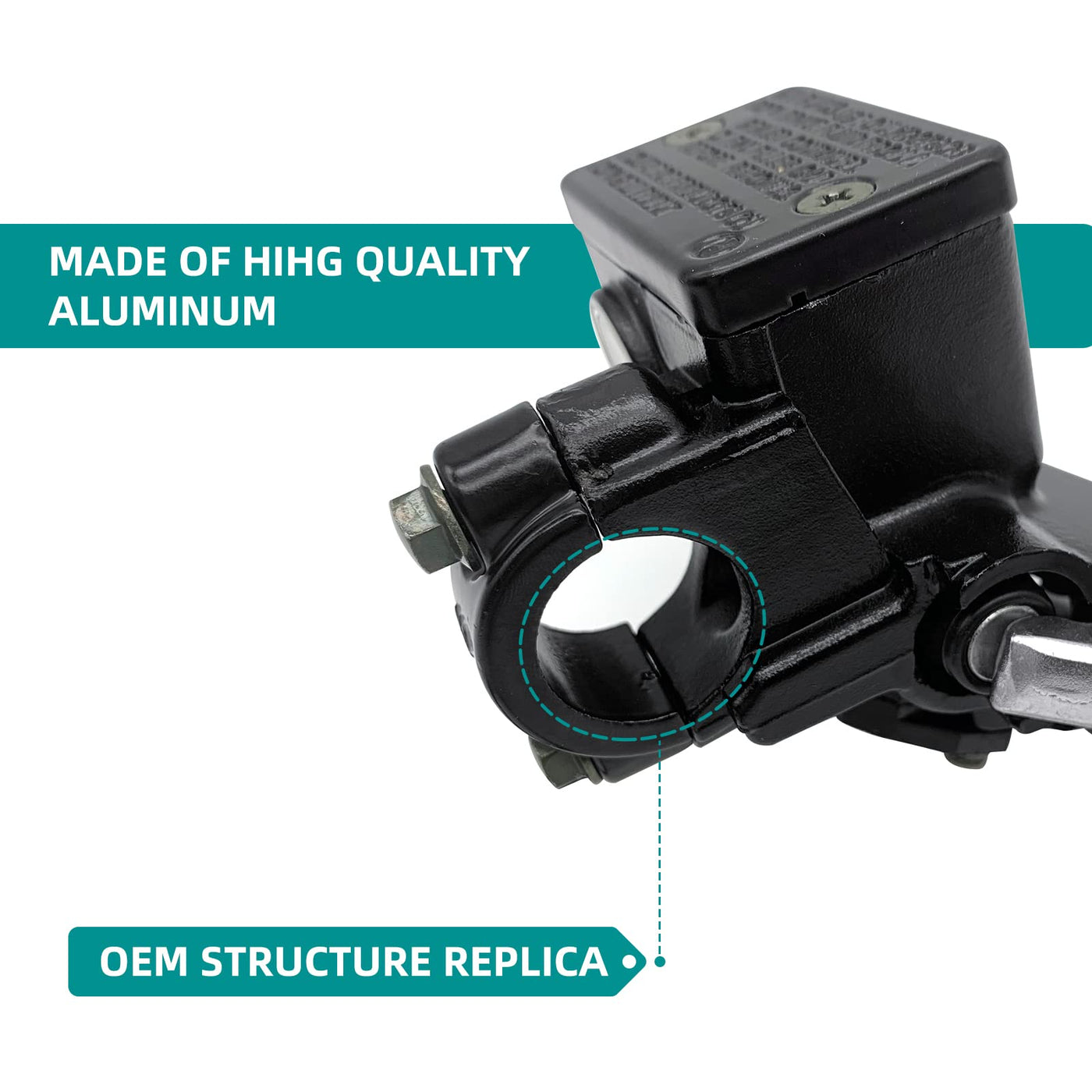 Q: What materials is this brake master cylinder made of?A: This Front Right Brake Master Cylinder is made of high-strength aluminum, which provides durability and high hardness. This material choice ensures a reliable and long-lasting replacement for your Kawasaki ATV.