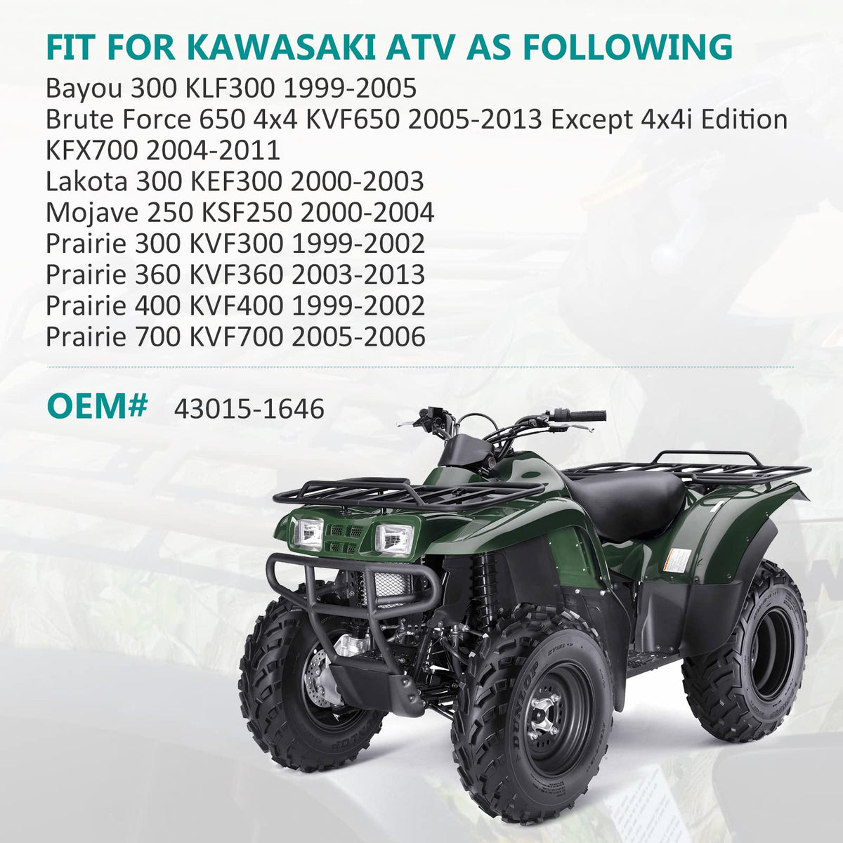 OEM# 43015-1646 Package: Front Brake Master Cylinder Assembly x 1 Faster To Confirm Fitment - please input your bike Year, Make and Model into the Amazon Garage to make sure this part fits your exact vehicle or not. Fit for Kawasaki ATV as Following Bayou 300 KLF300 1999-2005 Brute Force 650 4x4 KVF650 2005-2013 Except 4x4i Edition KFX700 2004-2011 Lakota 300 KEF300 2000-2003 Mojave 250 KSF250 2000-2004 Prairie 300 KVF300 1999-2002 Prairie 360 KVF360 2003-2013 Prairie 400 KVF400 1999-2002 Prairie 700 KVF700 2005-2006
