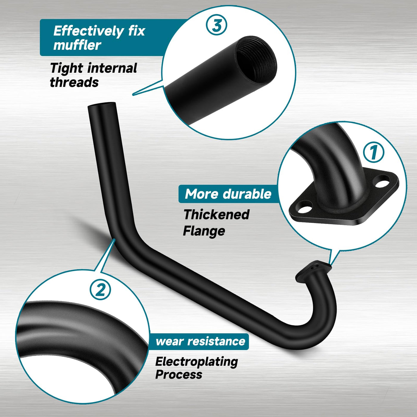 Exhaust Threaded Pipe Muffler Kit For Ct200U Coleman Bt200X Ct200U-Ex Mini Bike Go Kart Predator 212Cc 224Cc 196Cc Engine Baja Warrior Mb200 Performance Parts The Long Exhaust Threaded With Muffler Kit Fit For 212Cc Go Kart,For Honda Gx160 Gx200,196Cc/6.5Hp Gas Mini Bike. The Long Exhaust Pipe Is A Perfect Replacement For Coleman Bt200X, Ct200U, Ct200U-Ex,196Cc6.5Hp Gas Mini Bike.