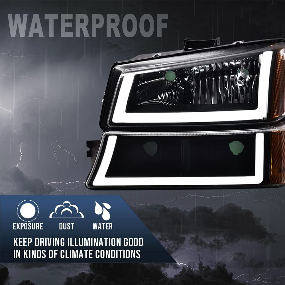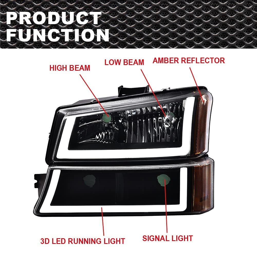 G-Plus Led Drl Headlights, Compatible With Chevy Silverado Avalanche 2003 2004 2005 2006, Clear Lens Black Housing Amber Reflect