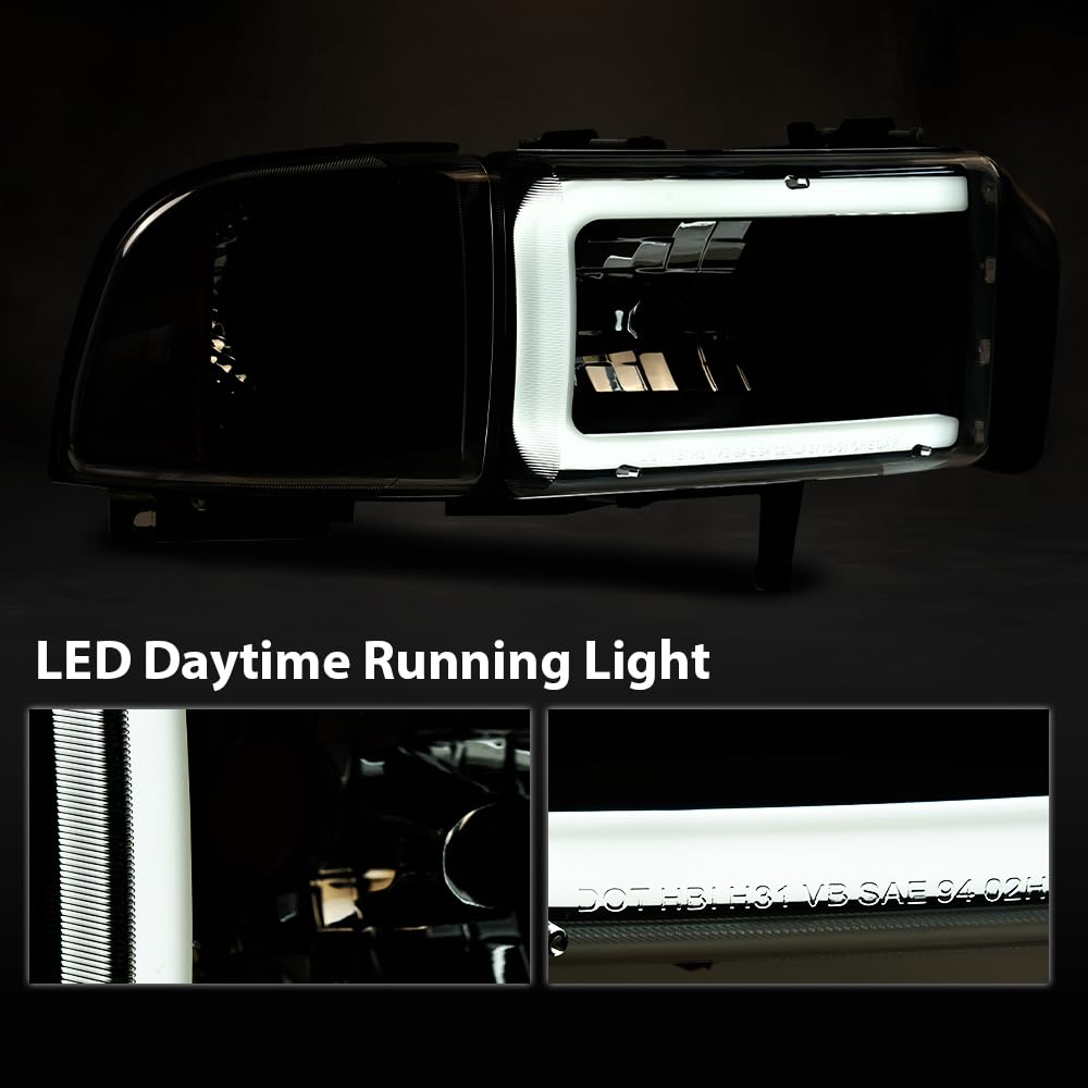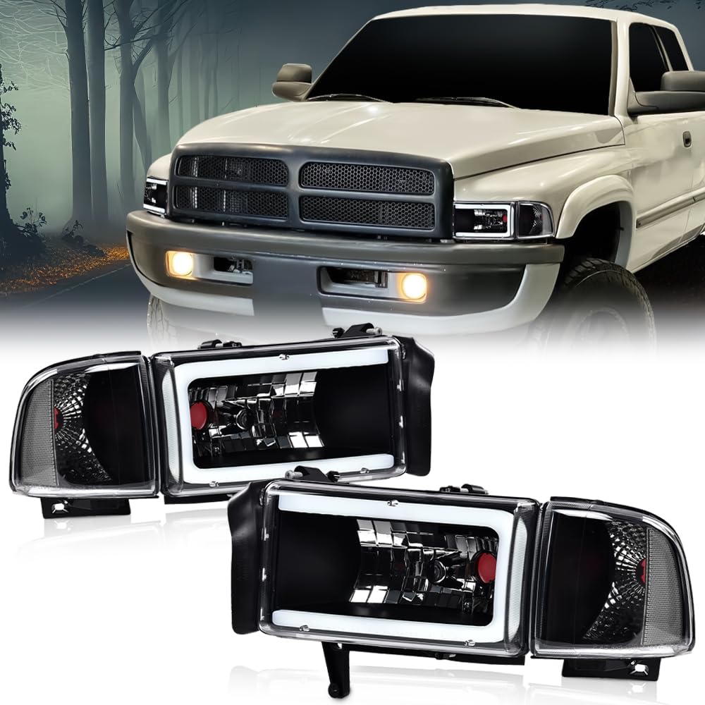 G-Plus Led Light Strip Headlights W/O Bulbs Compatible With Dodge Ram 1500 1994-2001/Fit Dodge Ram 2500 3500 1994-2002 Headlamps