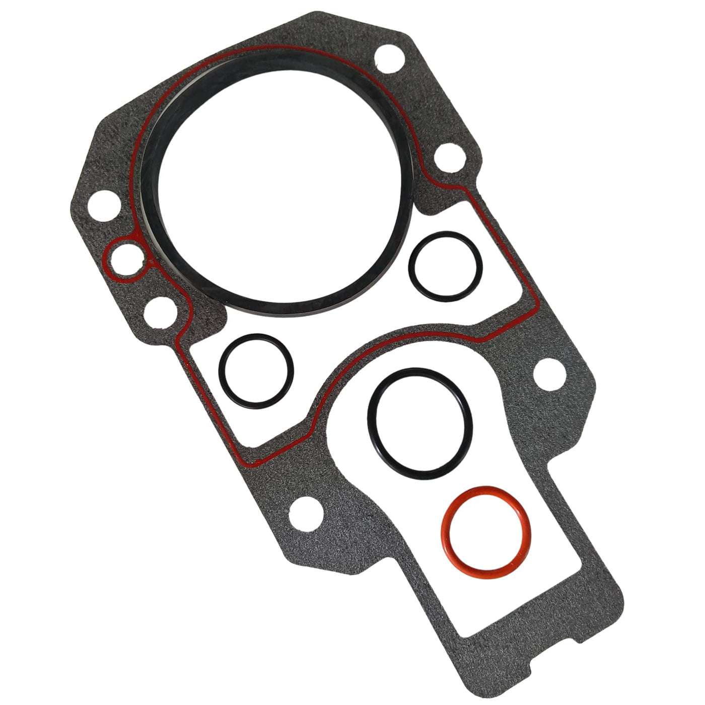 Q: What does the GHmarine gasket kit include?A: The GHmarine gasket kit includes 1 Outdrive Mounting Gasket (part number 18-2743), 1 Bell Housing Gasket (part number 18-2840), and 4 O-rings (part numbers 18-7117, 18-7153, 18-7170), ensuring you have all necessary components for installation.