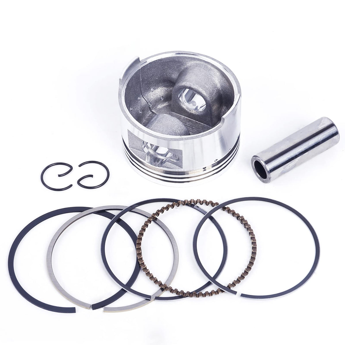 Q: What are the main components included in this cylinder kit?A: The kit includes essential components such as the cylinder, piston, piston ring, piston pin, piston pin clip, valve oil seal, gaskets, tensioner gasket, exhaust gasket, intake and exhaust studs, and exhaust nut.