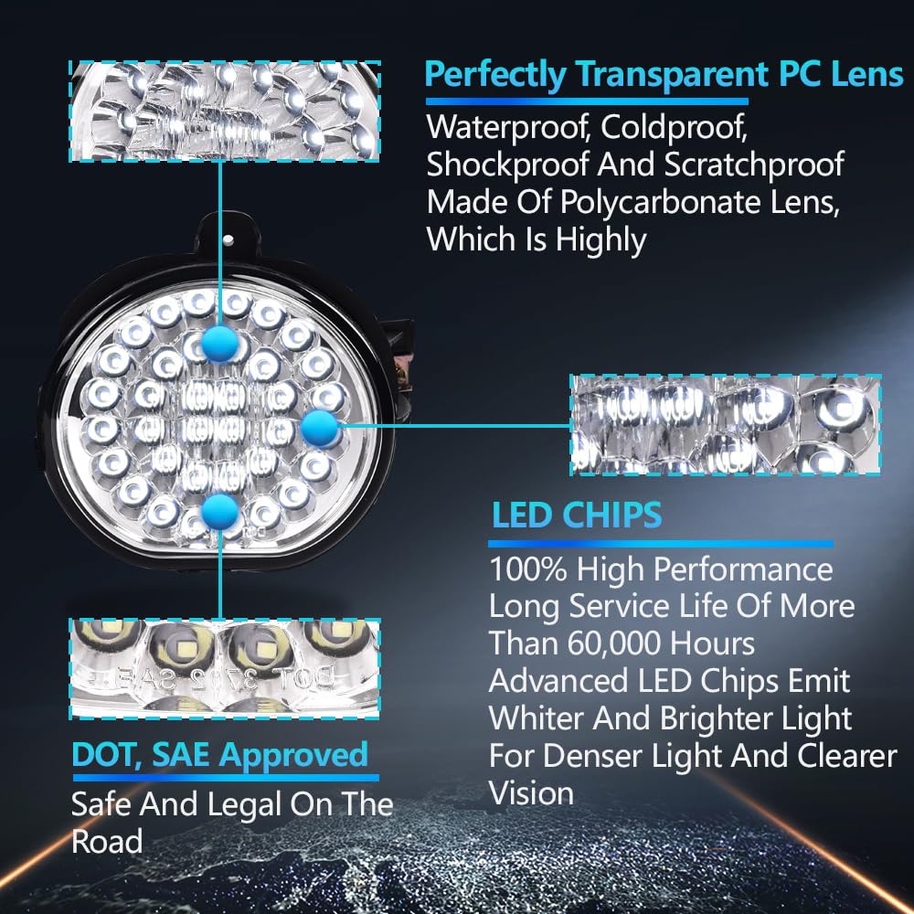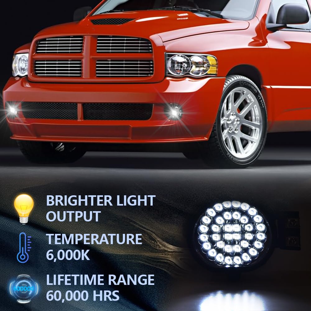 Grand Orang Led Fog Lights Compatible With Dodge Ram 2002-2009 Fog Lamps W/Switch Driver & Passenger Pair Clear Lens 55077475Ab