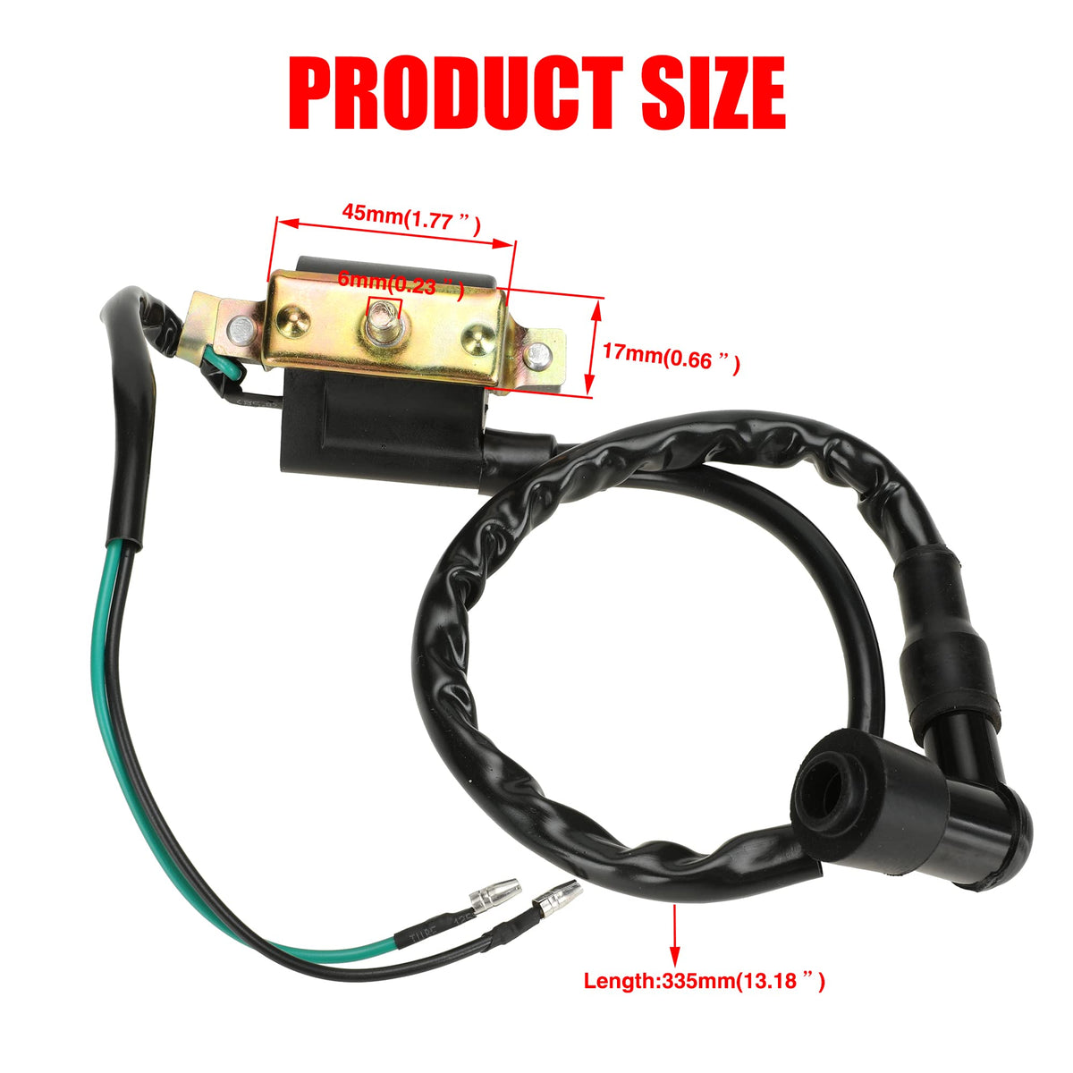Q: How do I know if this ignition coil will fit my ATV?A: To ensure compatibility, check the specifications of your ATV or dirt bike, especially if it has a 4-stroke horizontal engine. This ignition coil is designed for most 70cc, 90cc, 110cc, and 125cc models.