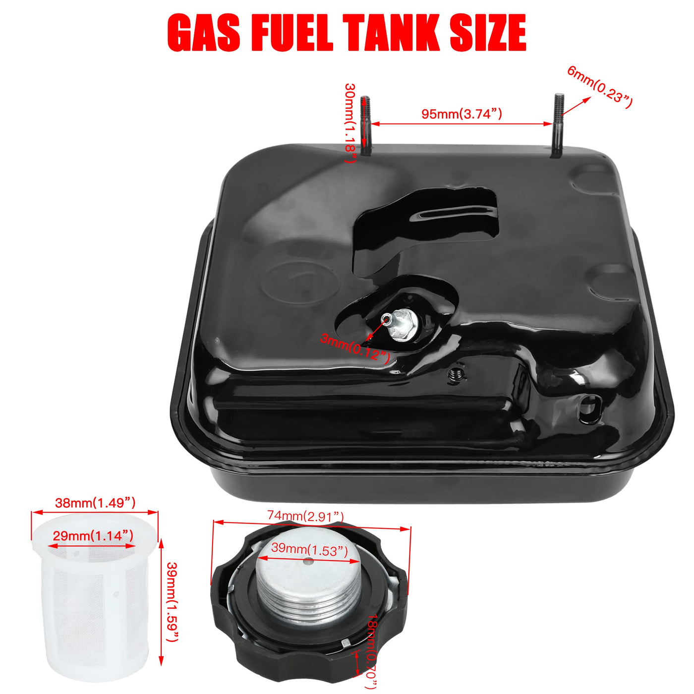 Grehua Predator 212Cc Upgrade Gas Fuel Tank With Fuel Level Gauge Fit For Go Kart Engine Mini Bike Generator Powered By Non Hemi Predator 212Cc 196Cc 6.5Hp Performance Parts Powerhorse Gx160 Gx200 Hammerhead 80T Baja Warrior Mb165 Mb200 Coleman Ct200U Bt200X Kt196. Feature: 1.High Performance—Upgrade Threaded Design Of Fuel Tank Cap To Prevent Fuel Tank Leakage,It Is More Easier To Install.In Addition, With The Amount Of Fuel Gauge, You Can Observe The Amount Of Fuel In The Tank At Any Time. And You Can Add Fuel In Time To Prevent No Fuel When Riding. 2.We Have Complete Accessories In Each Package. Fitment: Fitment Modle Compatibility : Predator 212Cc 6.5Hp,Non Hemi 212Cc Coleman Ct200U Trail 200 ,Bt200X ,Ct200U-Ex,Ct200U-Exr,Kt196,Rb200 Massimo Mb200 Baja Mini Bike Mb165 & Mb200 (Baja Heat, Mini Baja, Baja Warrior). Hensim Mini Bike Mb165 & Mb200 (Heat, Mini Baja, Warrior) Falcon 200 Mini Bike Massimo Mb200 Motovox Mbx20 Manco Go Kart Hammerhead 80T Go Kart Hammerhead Mini Shark Go Kart Trailmaster Buggy Interceptor Go Kart Trailmaster Mb200-1,Mb200-2 Item Condition : New Color : Black Material:Metal Fuel Tank Capacity:3L/0.8 Gallons Product Size: Length Of Fuel Tank:233Mm/9.17” Width Of Fuel Tank:206Mm/8.11” Height Of Fuel Tank:130Mm/5.24” Package Included: 1 X Fuel Tank 1 X Tank Cap 1 X Spark Plug 1 X Screw,2 X Clip,2 X Nut 1 X Wrench,1 X Collar 1X In-Tank Filter 1 X Valve Petcock 1X Fuel Line Tube —Please Check As Much As Possible To The Item Picture, Model And Size Carefully Before Purchasing.