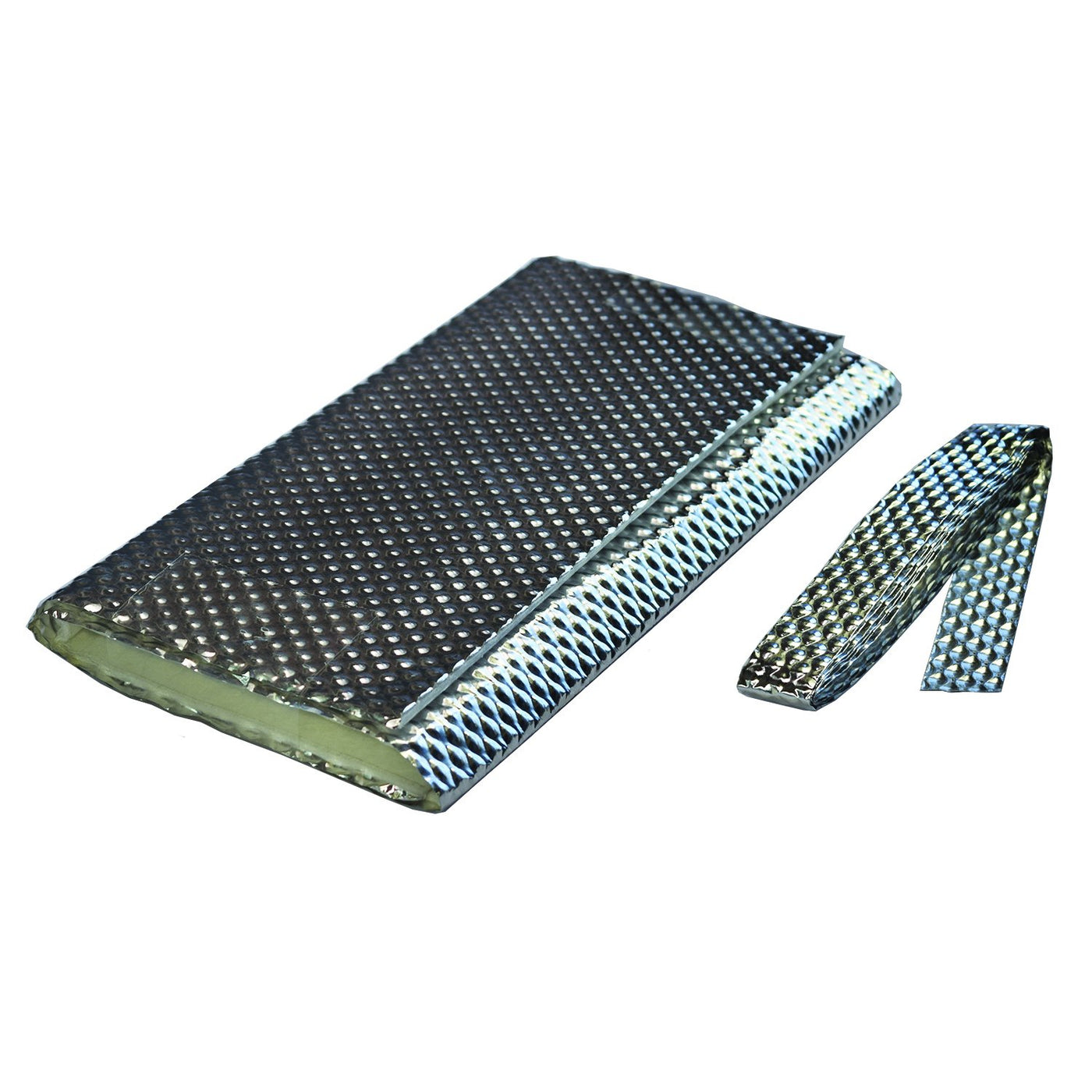 HP Sticky Shield is the ultimate way to stop heat from radiating into the drivers compartment of your ride. Made from a dense layer of 1/8 inch ceramic insulation shielded by a rugged layer of .003 inch thick aluminum, HP Sticky Shield may be pressure washed after installation and is resistant to the elements. The heavy duty peel and stick adhesive will bond to any clean surface. This is the perfect radiant heat shield for mufflers, catalytic converters, DPF's, turbos, downpipes, and exhaust system heat. This HP Sticky Shield can be used with less than 1 inch of airspace, however when used with 1 inch or more airspace, it is capable of shielding up to 90 percent of radiant heat. Use Heatshield Armor Weld Tape to seal seams when putting two of these heat shields together and also protect the edges of HP Sticky Shield.