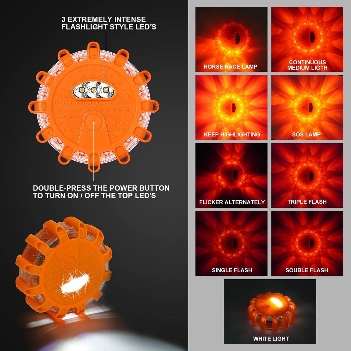 Heigpan Gp904 Led Road Flares Emergency Light Kit, 9 Glow Modes Strong Magnet Hang Hook For Holiday Gift, Road Emergency Rescue