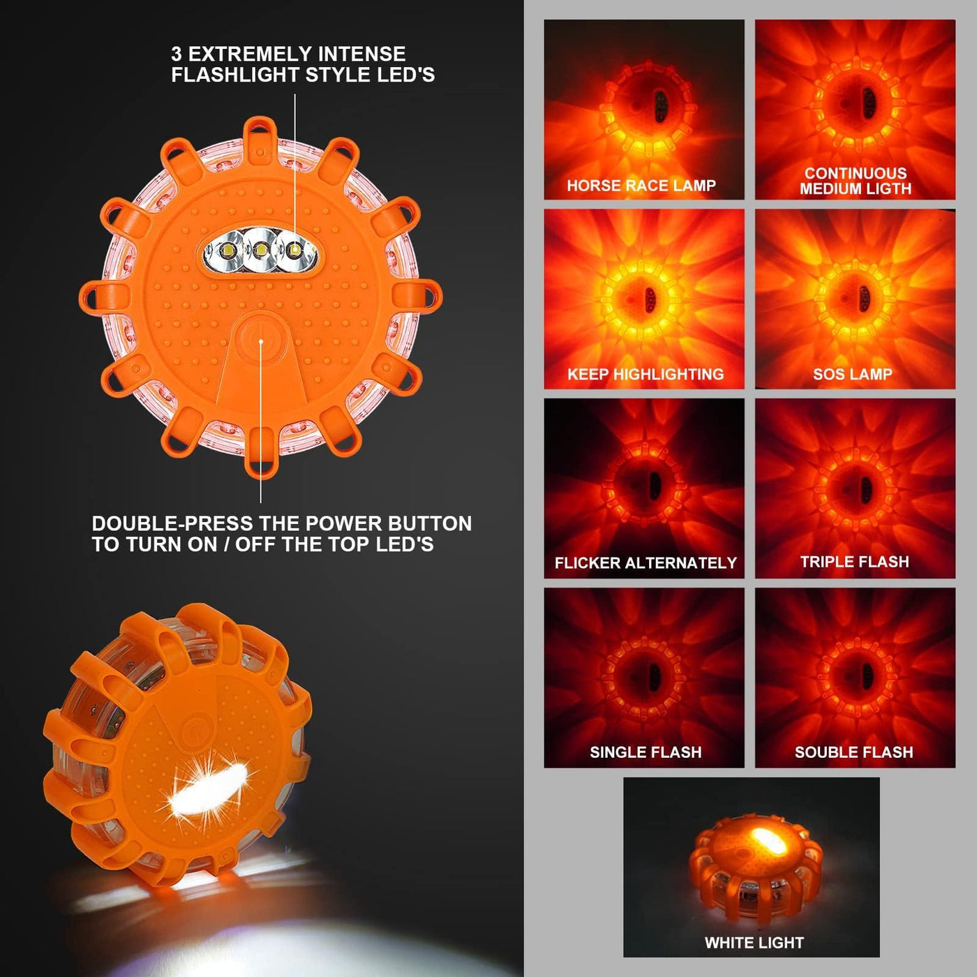 The roadside safety disc is shockproof and water-resistant, which is good for winter motorways & country roads, ideal for car breaks down or stranded in the dark, as a warning to other motorists. The warning lights can be seen from a mile away, can even be placed inside a traffic cone for the ultimate safety zone