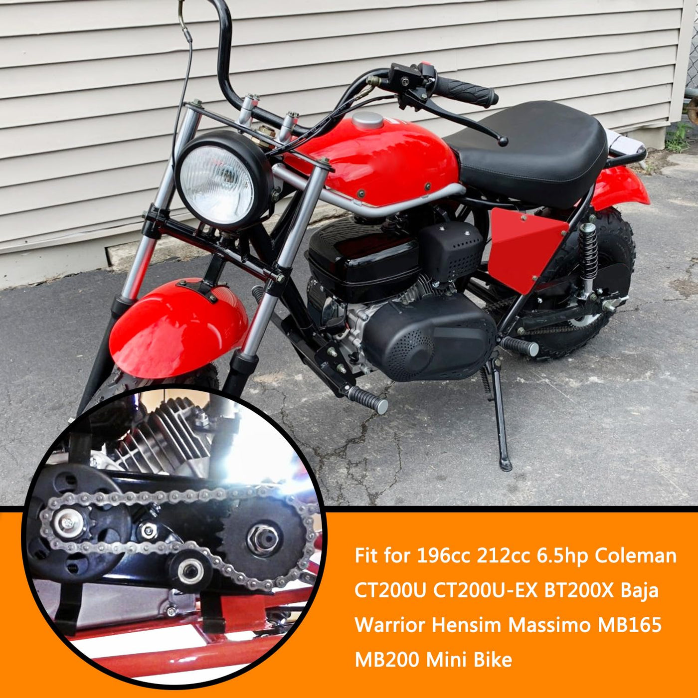 Fitment —Front #420 Roller Chain 42 Links Fit For Predator 196Cc 212Cchp 5.5 6.5Hp Engine Mini Bike, Coleman Ct200U Bt200X Ct200U-Ex Mini Bike, Massimo Mb200 Mini Bike, Baja Motorsports Mb165 Mb200 Mini Bike (Warrior, Mini Baja, Heat), Hensim Mb165 Mb200 Mini Bike, Trailmaster Mb200 Mini Bike.