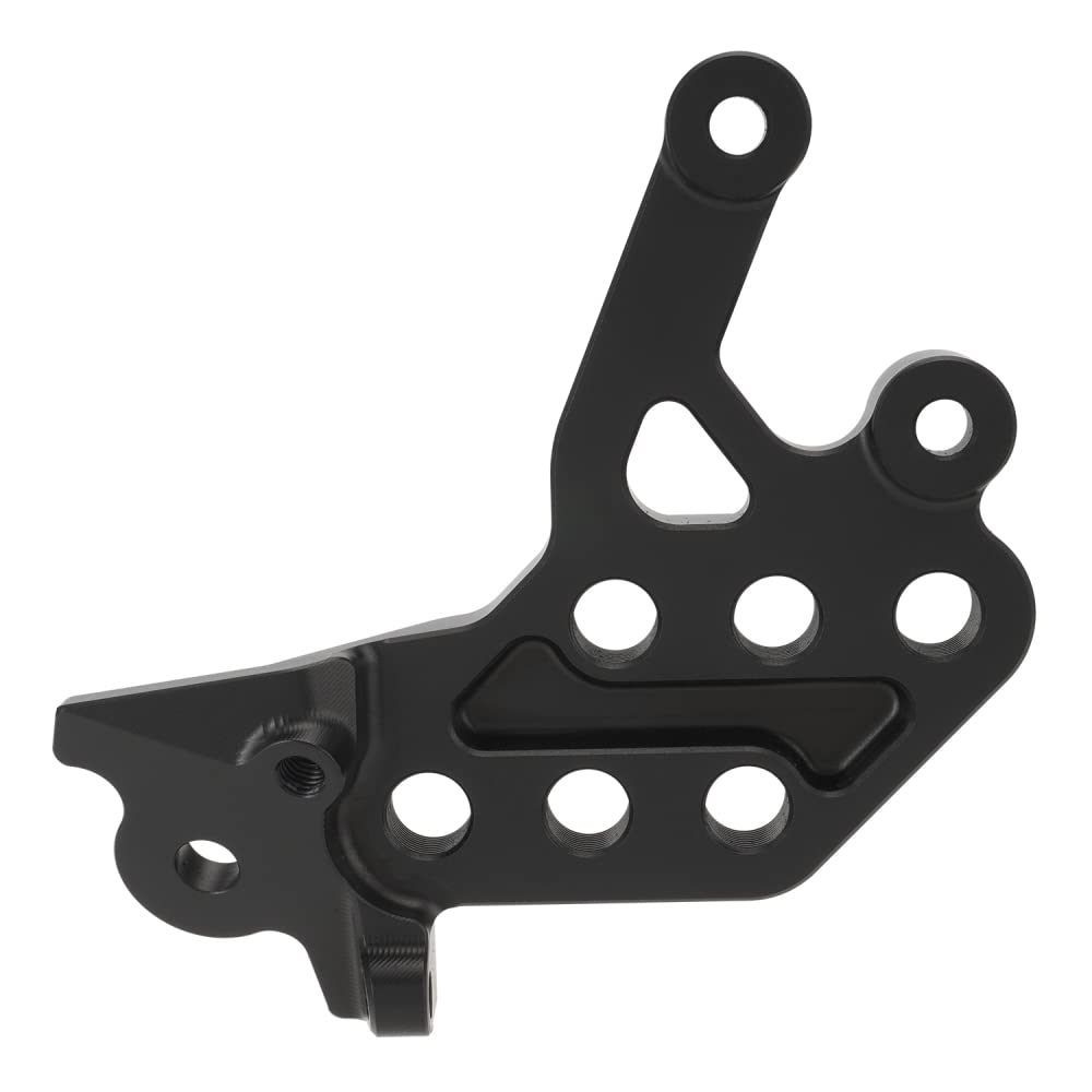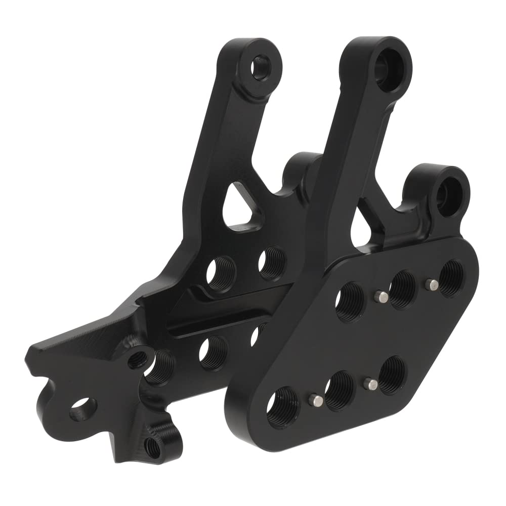 Q: How adjustable is the JFG RACING Foot Pegs Bracket Kit?A: The foot bracket offers adjustable functionality with a maximum downward movement of 3 cm and a backward movement of 6 cm. It can be adjusted in six different positions, allowing riders to customize their riding experience.