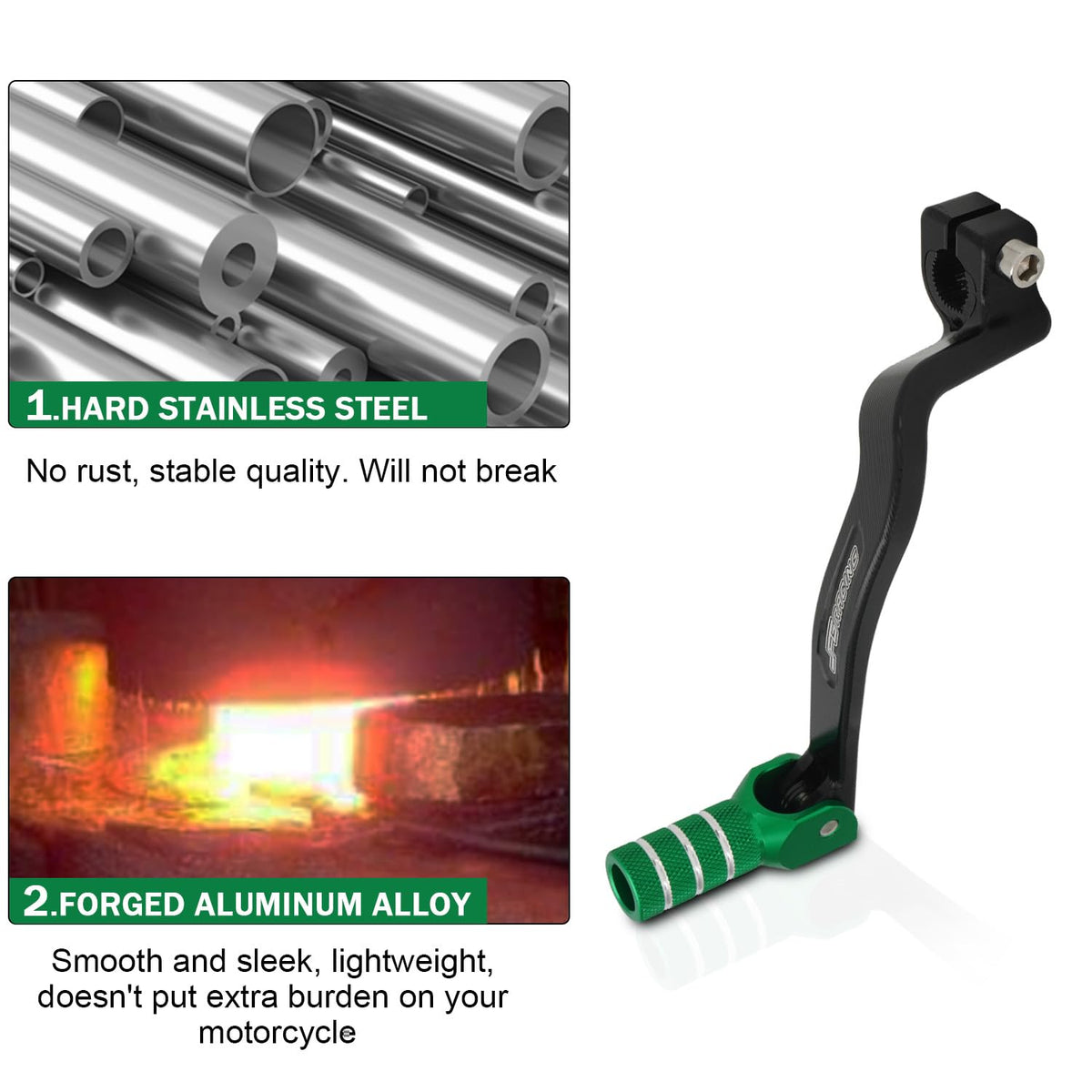 Q: What makes the anodized finish of this shift lever beneficial?A: The anodized finish provides a smooth surface that is wear-resistant and corrosion-resistant, enhancing the lever's longevity and adding an attractive look to your motorcycle.