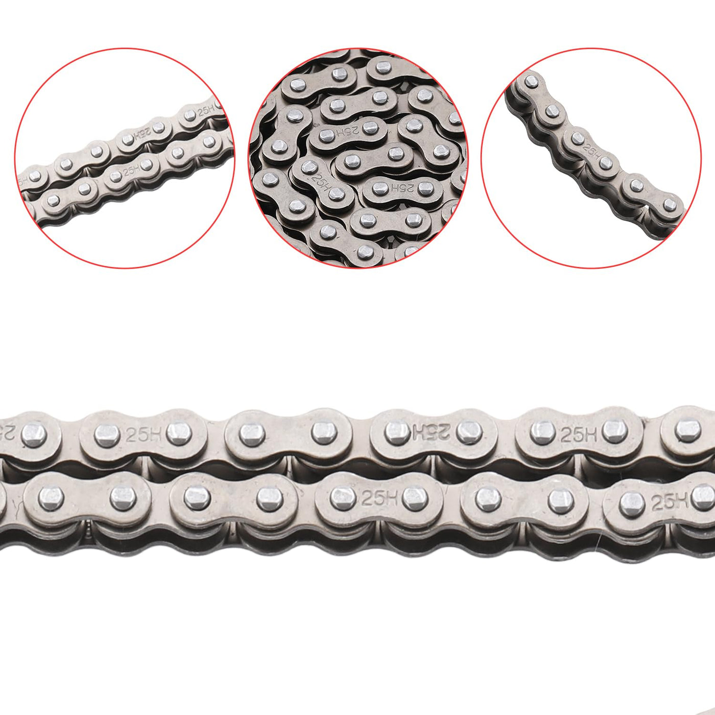 Q: How many links does the KAMIER #25 Roller Chain have?A: The KAMIER #25 Roller Chain features 56 links, providing the necessary length for various electric go-kart applications.