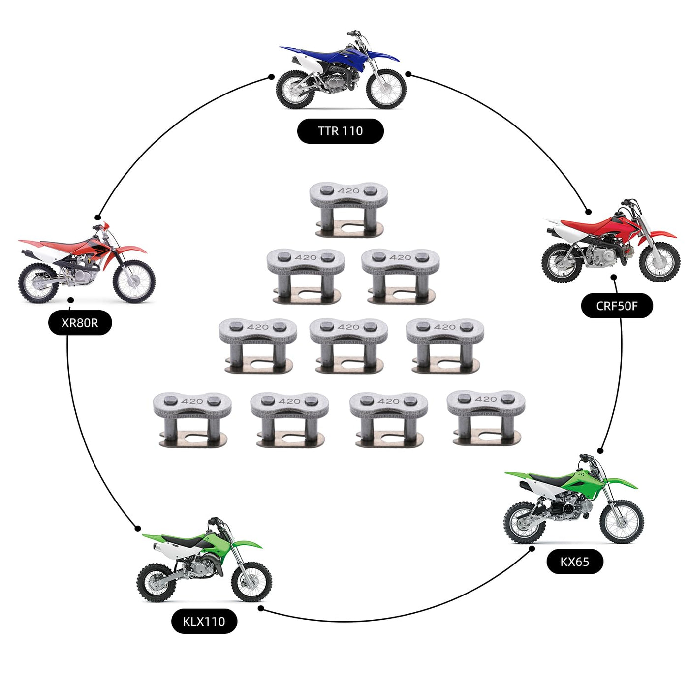 Q: Is the KAMIER Chain Master Link suitable for all types of sprockets?A: No, the KAMIER 420 Master Links are specifically designed to fit 420 front and rear sprockets. They do not fit 428 sprockets, so it’s important to ensure compatibility with your specific sprocket type.