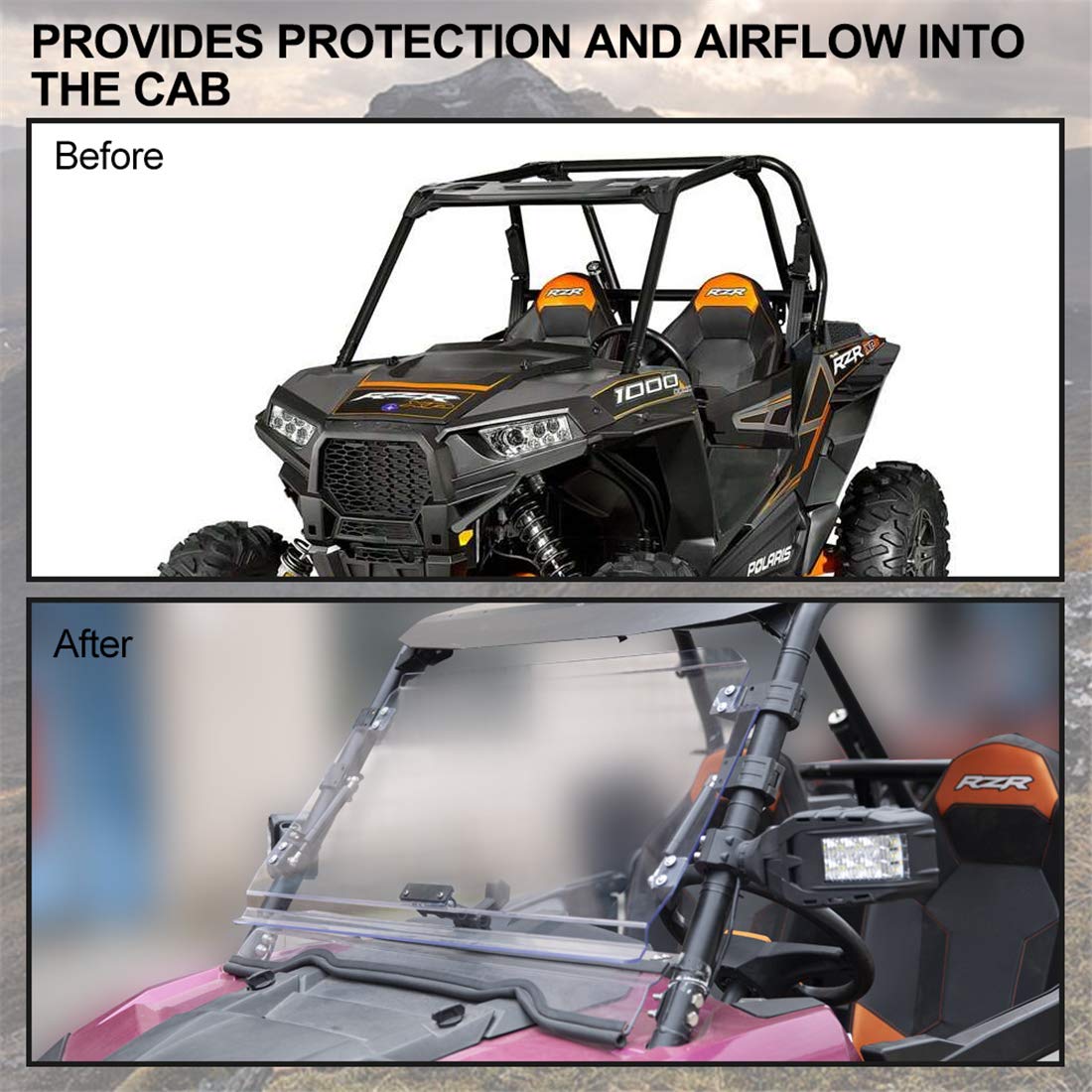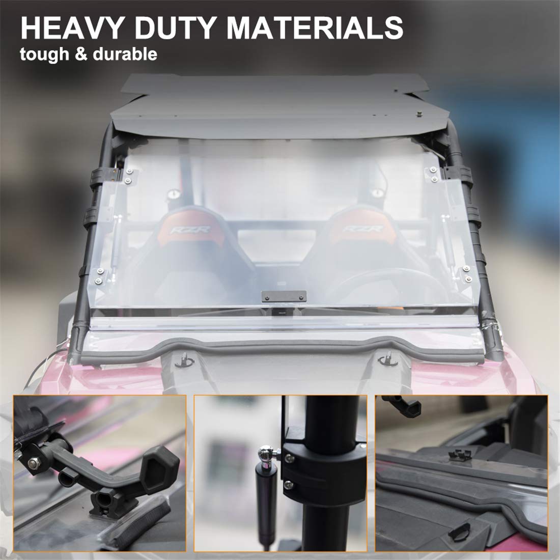 KIWI MASTER Heavy Duty 3-in-1 Flip Windshield Compatible for 2014-2018 Polaris RZR XP 1000 900 Scratch Resistant