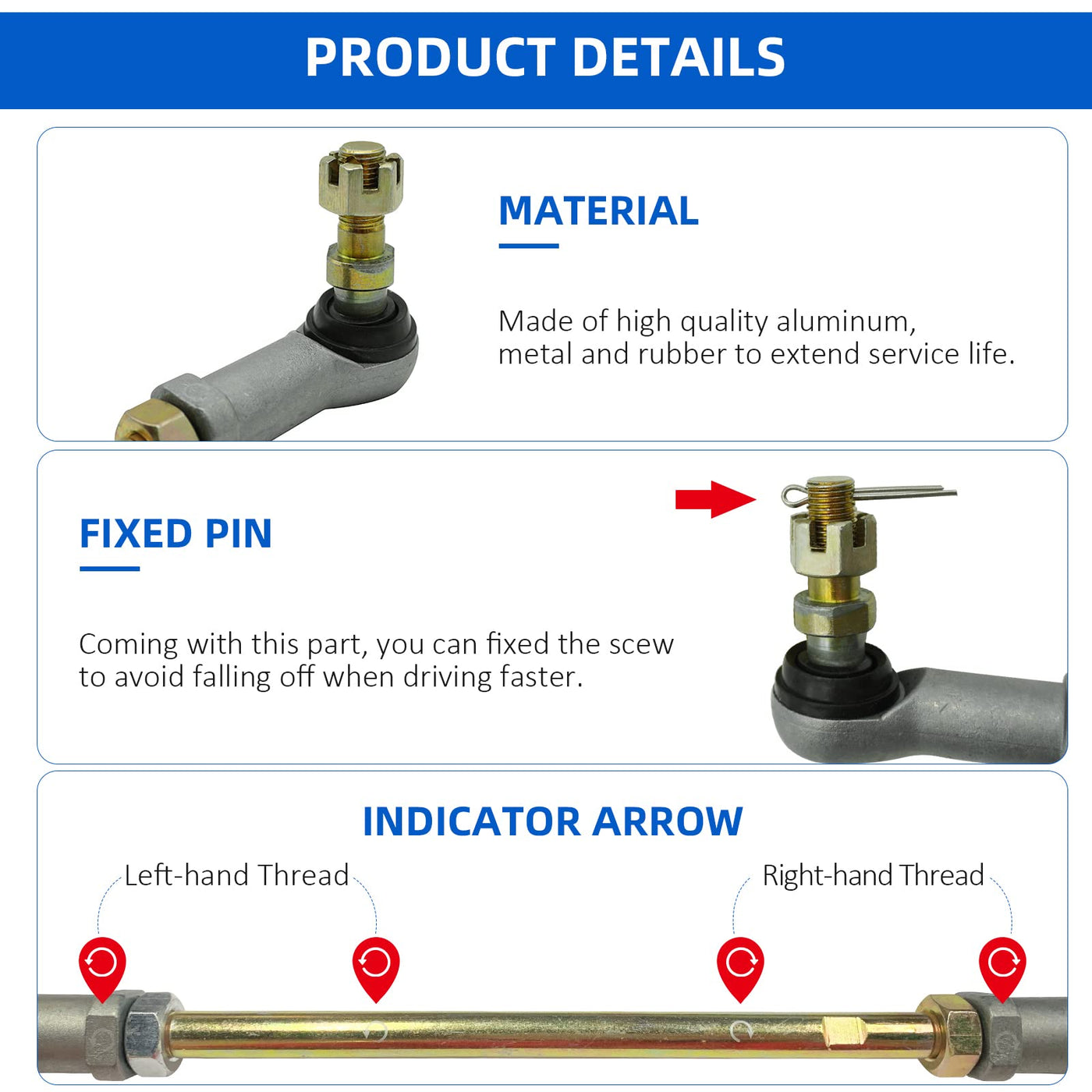 Q: What warranty or customer service support is available for this product?A: JAVIK offers 24-hour customer service and a 1-year warranty for the tie rod assembly. If you encounter any issues such as missing parts or fitment problems, feel free to reach out for assistance.