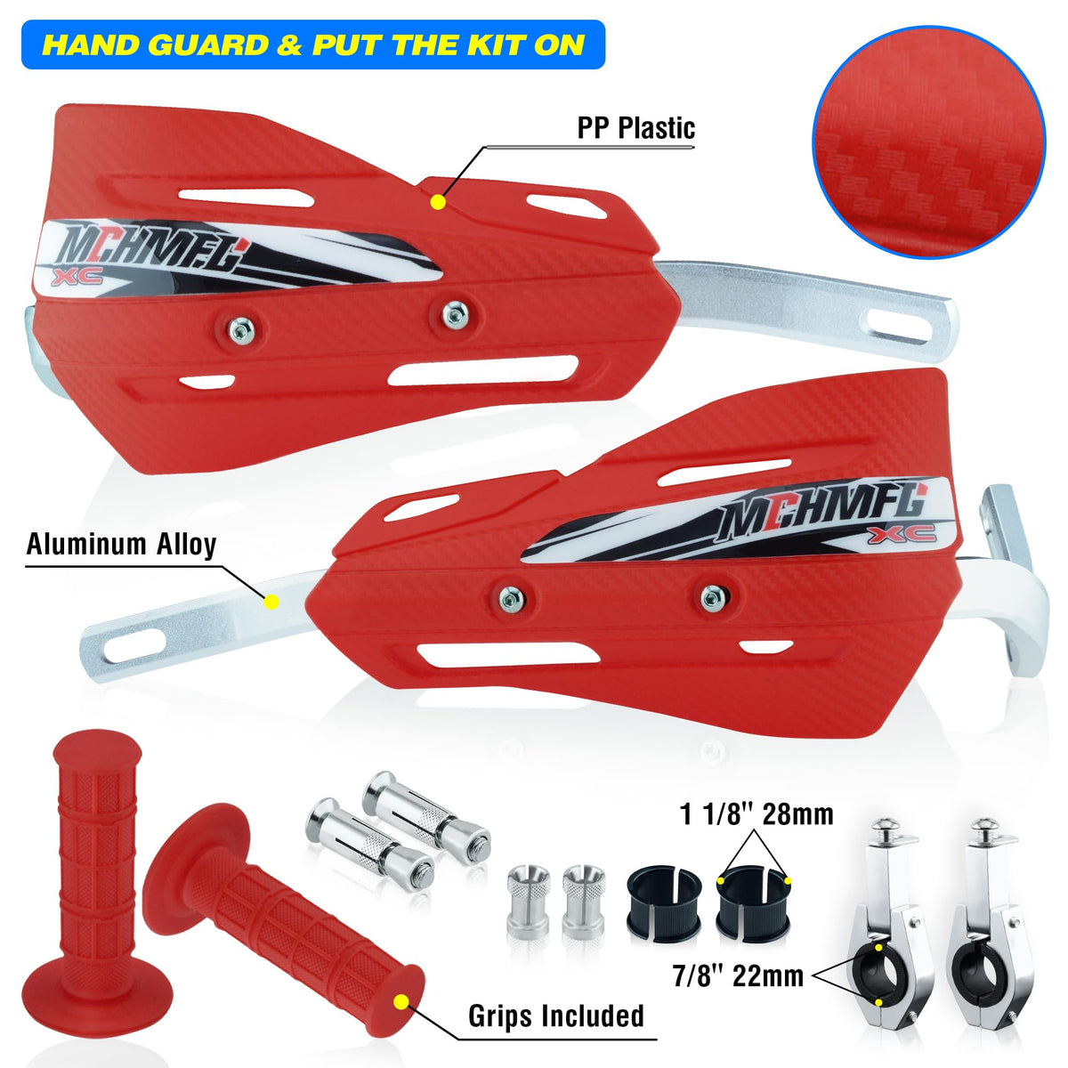 Mchmfg Dirt Bike Handguards With Grips - 7/8' And 1 1/8' Motorcycle Hand Guards For Atv - Universal Handguards Bracket For Off Road Motorcross Red