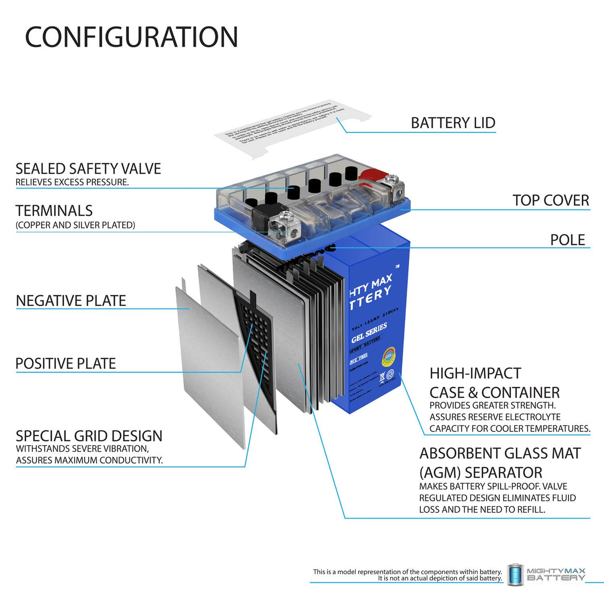 YTX14AHL GEL is a 12V 12AH 210 Cold Cranking Amps (CCA) GEL (Maintenance Free) Battery | Reliable Performance: Our GEL batteries deliver consistent, long-lasting power thanks to their slower self-discharge rate compared to AGM batteries. This means they retain their charge longer when not in use, making them a superior upgrade choice | Durability in Extreme Conditions: Mighty Max GEL batteries provide consistent performance in extreme temperatures, excelling in a wide range of climates. Their resilience to temperature fluctuations allows for solid power delivery, whether you're operating in the heat of summer or the chill of winter | Engineered for Rugged Use with Enhanced Safety Features: Our GEL batteries feature a thick, non-spillable gel paste that is safer and less prone to leaks, reducing the risk of acid spills and harmful fumes. This meticulous design enables our gel batteries to resist vibrations and shocks, making them well-suited for demanding environments | Trusted by our customers: Mighty Max has earned a solid reputation for quality and reliability, making it a brand people trust. Experience the benefits of advanced GEL technology for superior discharge capabilities, enhanced safety, better performance, and longer lifespan