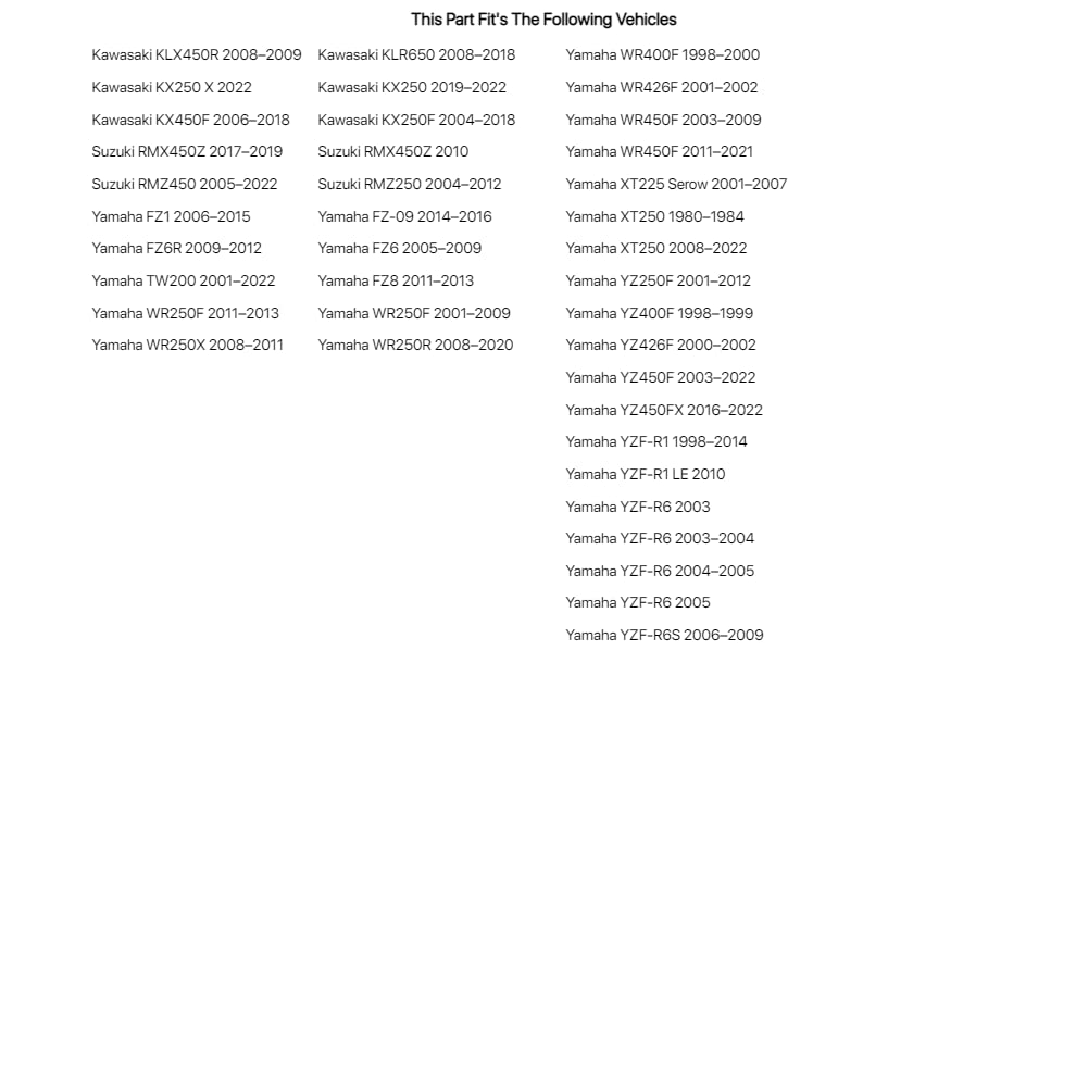 Q: What motorcycles are compatible with the Motion Pro Throttle Tube?A: The Motion Pro Throttle Tube is specifically designed to fit Kawasaki KX450F models from 2006 to 2018. It is advisable to check the fitment guide image for additional compatibility information.
