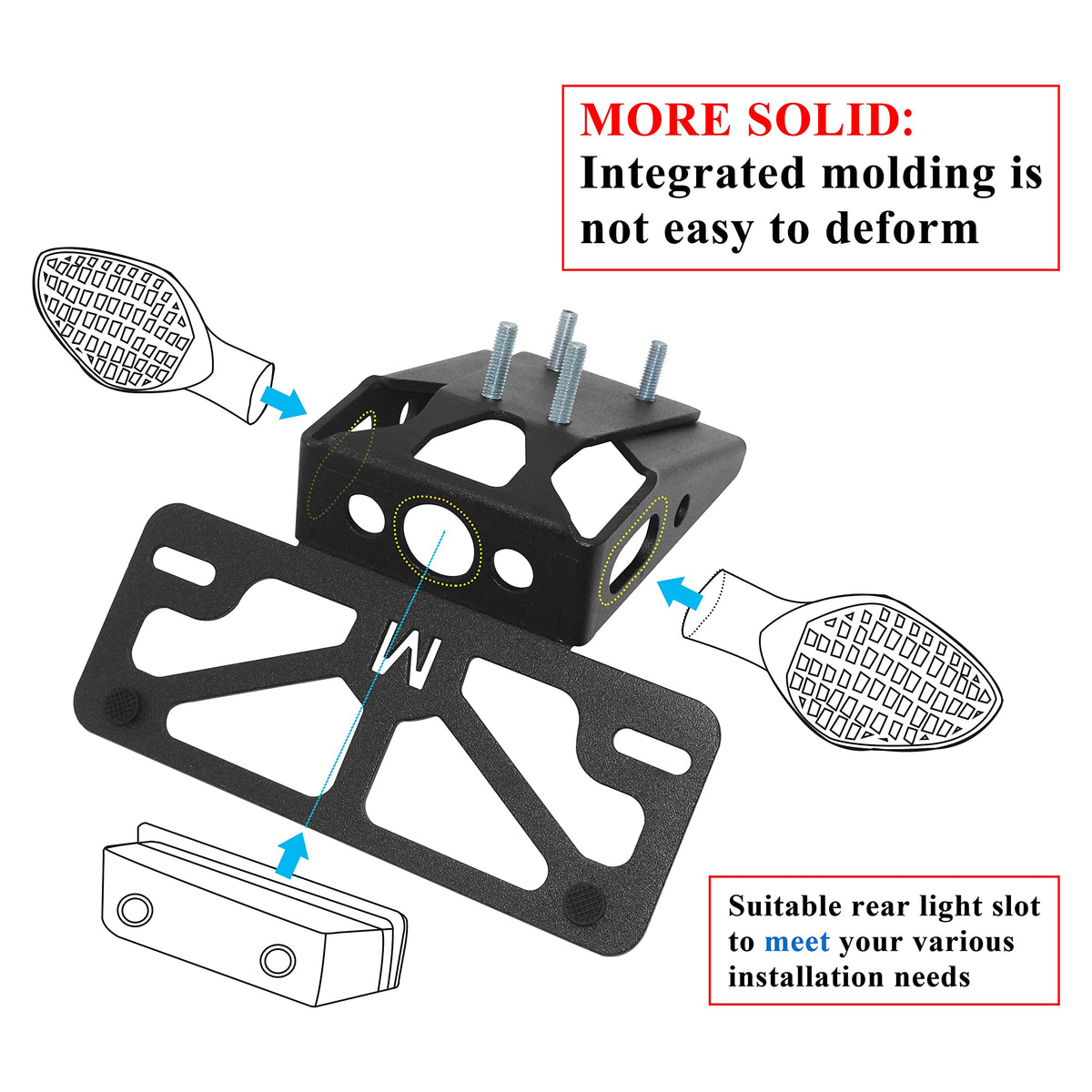 Q: How easy is it to install the Fender Eliminator Kit on my motorcycle?A: Installation is straightforward as the bracket structure is formed in one piece, requiring only simple fixed installation without the need for complex adjustments.