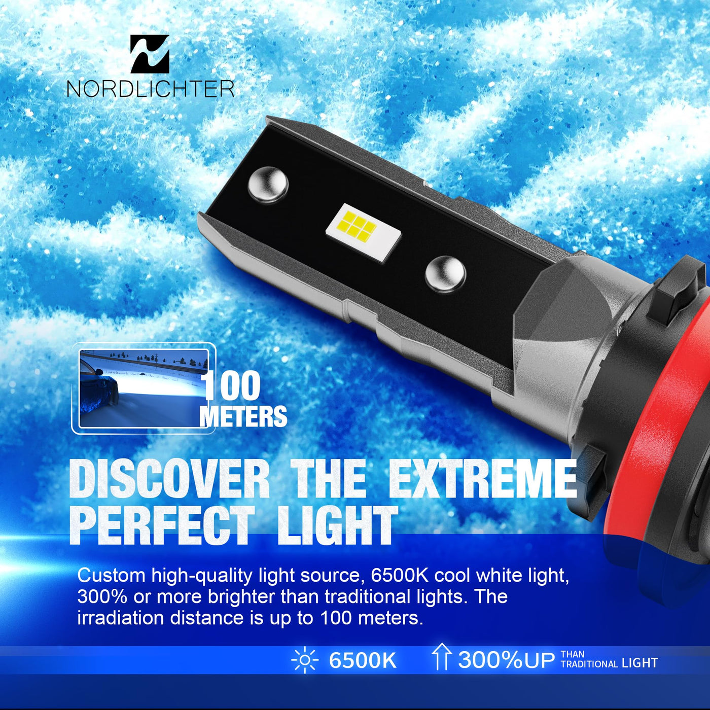 N Nordlichter H11 Bulbs, H11 Fog Light 300% Brightness 1:1 Mini Size 6500K Xenon White Fanless Wireless Bulbs For Car (Pack Of 2