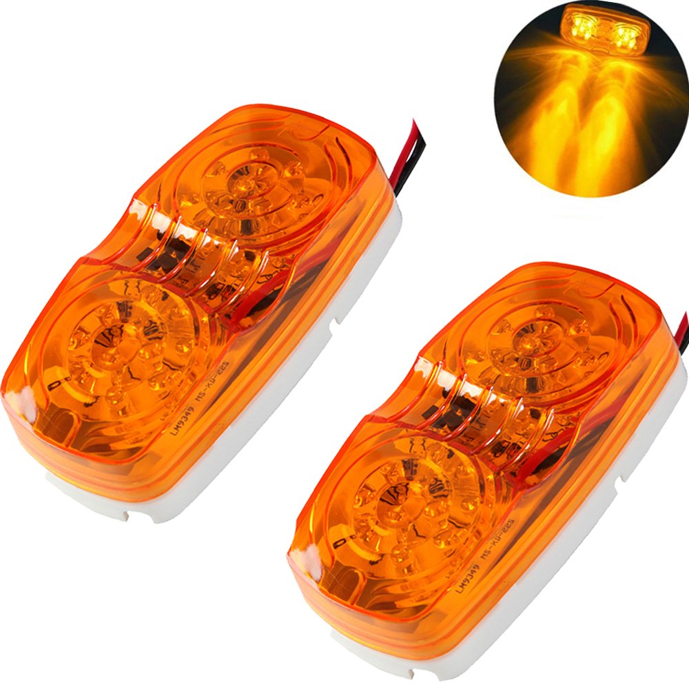 New Sun 4 Pcs Amber & Red 10 Led Trailer Side Marker Light, Bullseye/Tiger Eye/Double Bubble Clearance Light, 12V 4X2 Rectangula
