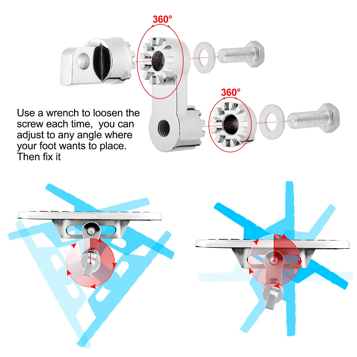 Upgraded Motorcycle Adjustable Floorboard Front Passenger Foot Pegs Footboards Pedals compatible with Harley Sportster 883 1200 Notice: 1)Installation Instruction and Hardware ARE NOT INCLUDE 2)Transaction Item Must need to MODIFY for Fitment, please be make sure this problem before purchase. Feature: Condition:Brand NEW Heavy Metal Steel Forward or Backward Adjustment 360 Degrees Angle Adjustment Fitment: Compatible with harley male mount-style footpeg supports (except the rider position on '08-later FXCW, FXCWC, FXS, FXSB and FXSBSE, '07-later XL883N, XL1200N, XL1200T, XL1200V and XL1200X, '07-'10 XL883L, '11-later XL1200C and '08-later XR). Compatible with all Harley models with cuff footpeg bracket Compatible with Harley Sportster 1200 XLH1200 1988 Package Include: 1 Pair Front Floorboards (Left and Right side) Instruction and Hardware ARE NOT INCLUDE