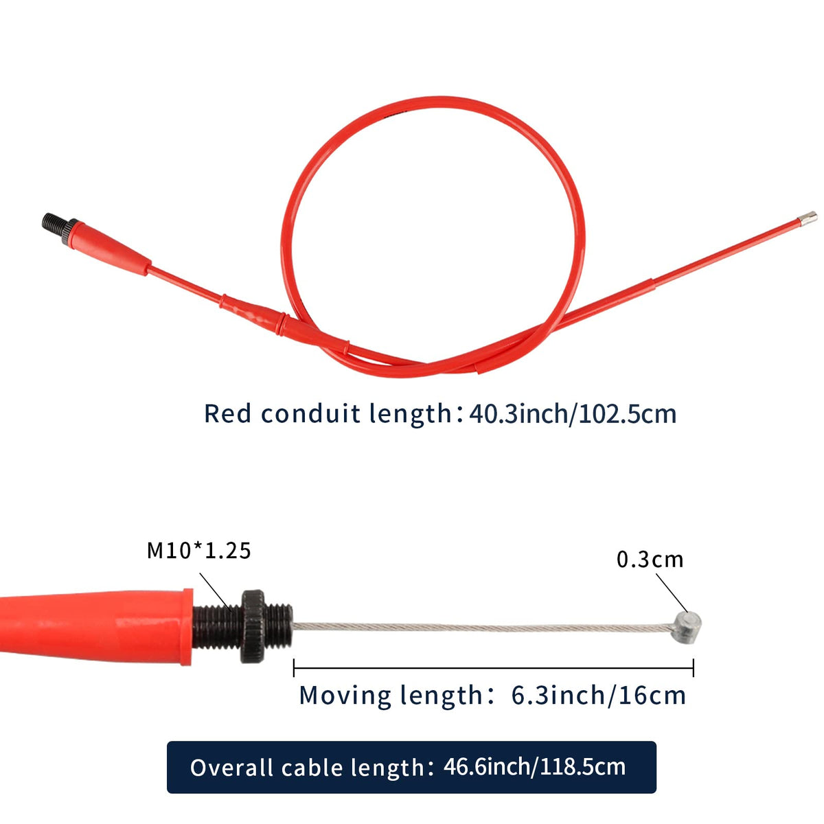 Descriptions:Length: 40" Throttle Cable Fits for Universal Motorcycle.Please check the throttle cable before your purchase, Your old throttle cable joint needs to look like the same with our pictures!Feature:NIBBI RACING was focus on Off-road motorcycle modification for more then 15 years.100% brand new, never assembled, high quality.Easy to install.Enhanced heavy duty eyelet and casing with thicker and stronger inner wire,This is a brand new throttle cable.Specifications:Color:orangeMaterial:PVC protective sleeve,Metal chrome wire coreTotal Length:118.5cm (46.6")moving length: 16cm (6.3")protective sleeve length:102.5cm (40.3")Package Includes :1x Throttle Cable