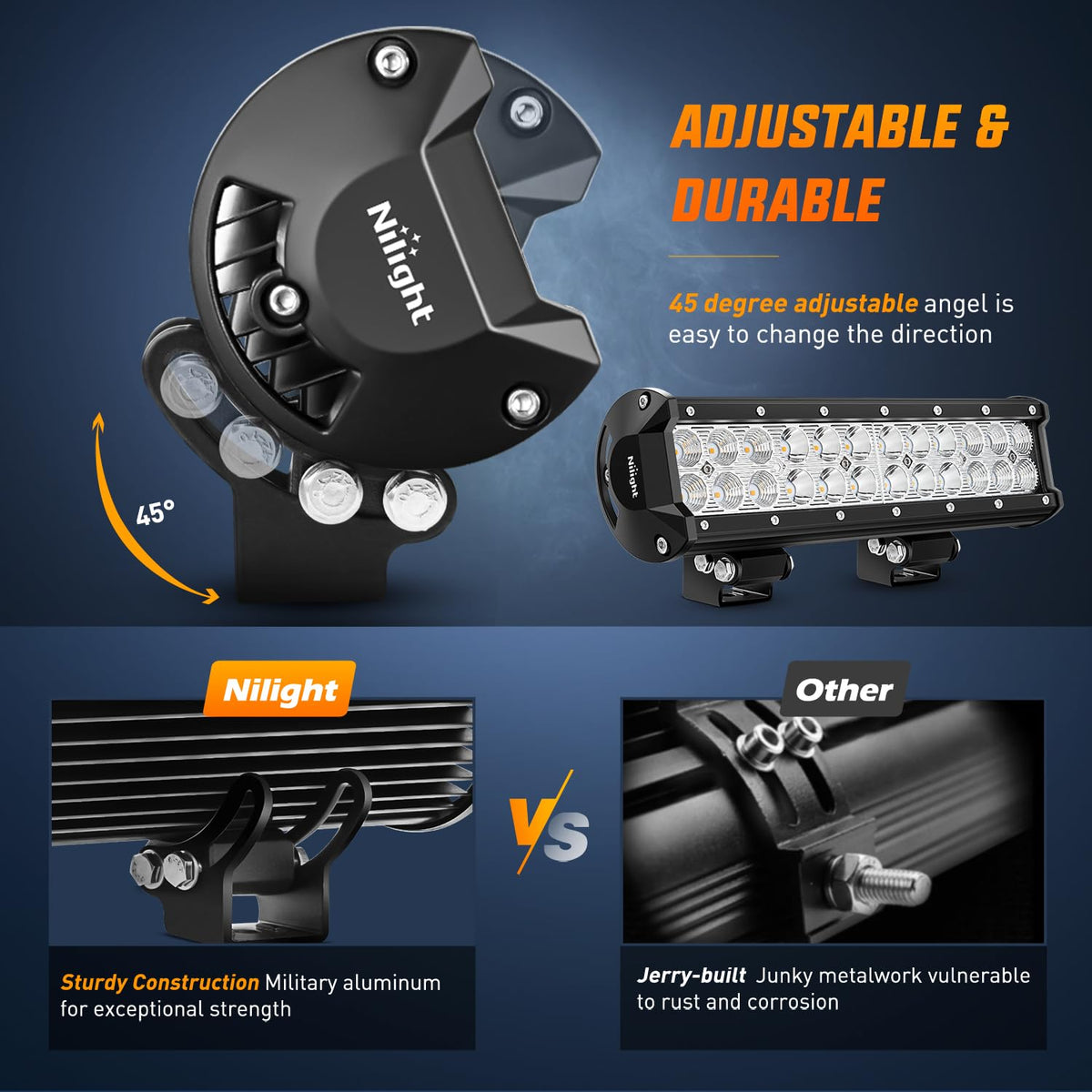Super Bright Blue Light: Adopted 24pcs 3w amber led chips directly, 72w 2800lm each light. Concentrated spot beam illuminates to further distance, allowing you to see the front and rear cars clearly in bad weather such as night or heavy fog, light up your night fishing, night ride or any other night activities | High Performance: Portability and versatility with a tough, aluminum cover, tough shatterproof PC , protective cover durable to withstand for any extreme usage condition. The aluminum fan design, makes it dissipate heat more faster and effective | Adjustable Mounting Bracket: The light bar can be adjusted to about 45 degrees, which makes changing direction of light beam easier | Wide Application: The light bar is universal fit, which is perfect for compatible for almost all 4x4, Trucks, Cars, Motorcycles, SUVs, ATVs, Boats, forklift and special vehicle (fire engine, police cars, rescue vehicle, communication vehicle, and military command vehicle). It can also work great as driving light, fog light, or for emergence use | Package Included: 1PC light bar, a pack of mounting brackets