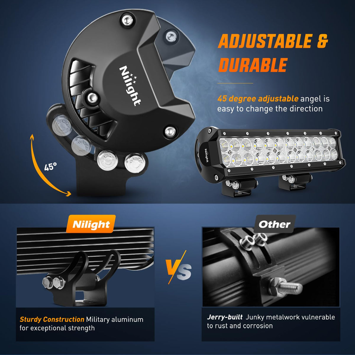 Nilight Led Light Bar 12 Inch 72W Spot Flood Combo Yellow Beam Off Road Lamp Fishing Hunting Emergency Deck Work Lighting For Tr