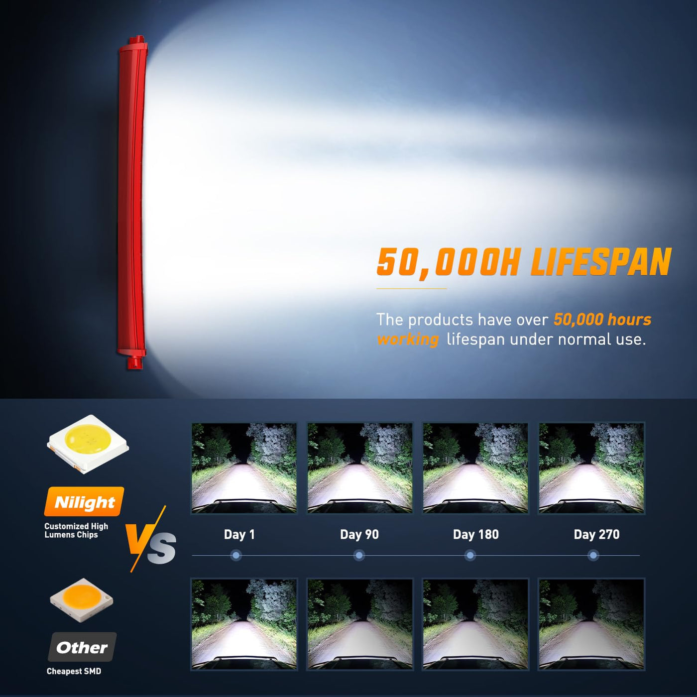 ?Super Bright?Combo Beam With Triple Row And Nest Reflector Cup Design In The Middle For Extreme Light Efficiency | ?Better Heat Dissipation?Special Designed 6063 Aluminum Profile With Thermal Grease Can Improve The Heat Dissipation Ability | ?Adjustable Mounting Bracket? The Bracket Can Be Adjusted And Slid, Offering Convenience To Adjust Position Flexibly When Needed | ?High Performance?Ip67 Waterproof Rating, Die-Cast Aluminum Alloy Shell, Waterproof, Dustproof, Rustproof And Shockproof Perfect Performance. Quick Cooling Alloy Heat Sinks Can Effectively Extend The Lifespan Of The Driving Light To Over 50,000 Lifespan | ?Package Include?50 Inch Triple Row Light Bar, Wiring Harness Kit