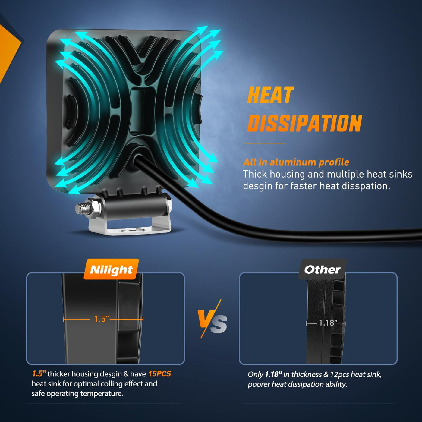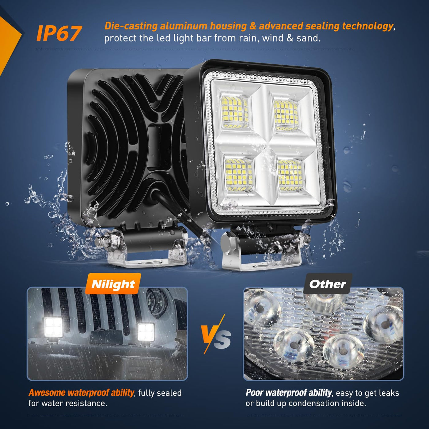 Nilight Led Tractor Lights Led Pods Square 2Pcs 4 Inch 64Leds Flood Bar Fog Driving Work Lighting For Truck Off Road Vehicles At