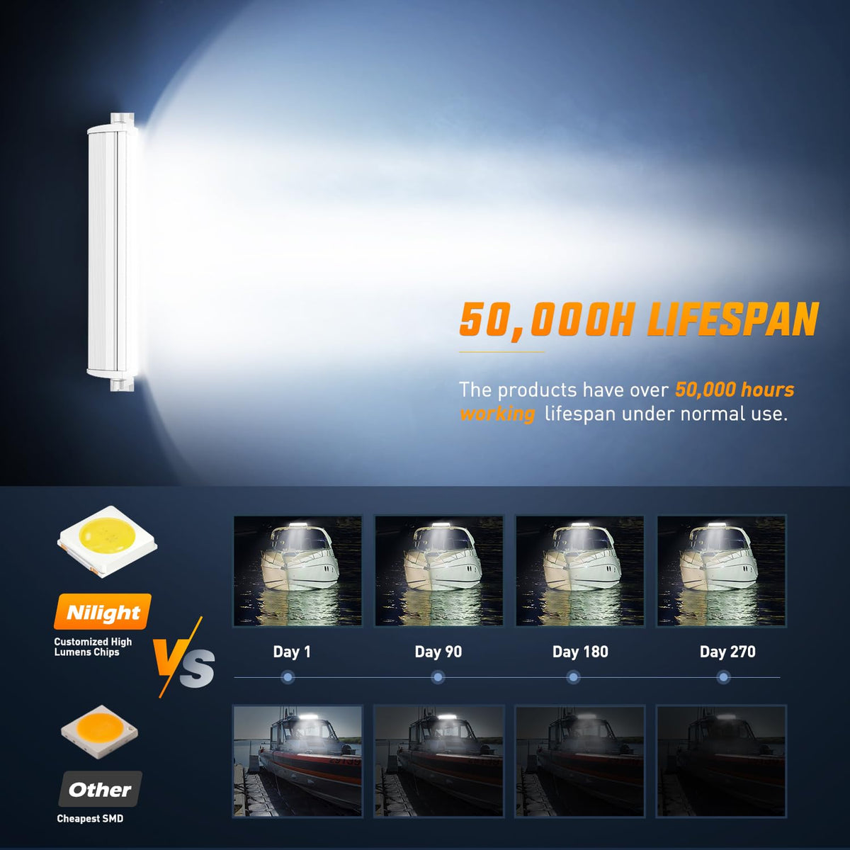 Nilight Marine Led Light Bar Navigation Lights 22 Inch White Spot Flood Combo Ponton Boat Deck Dock Lighting For Night Fishing T
