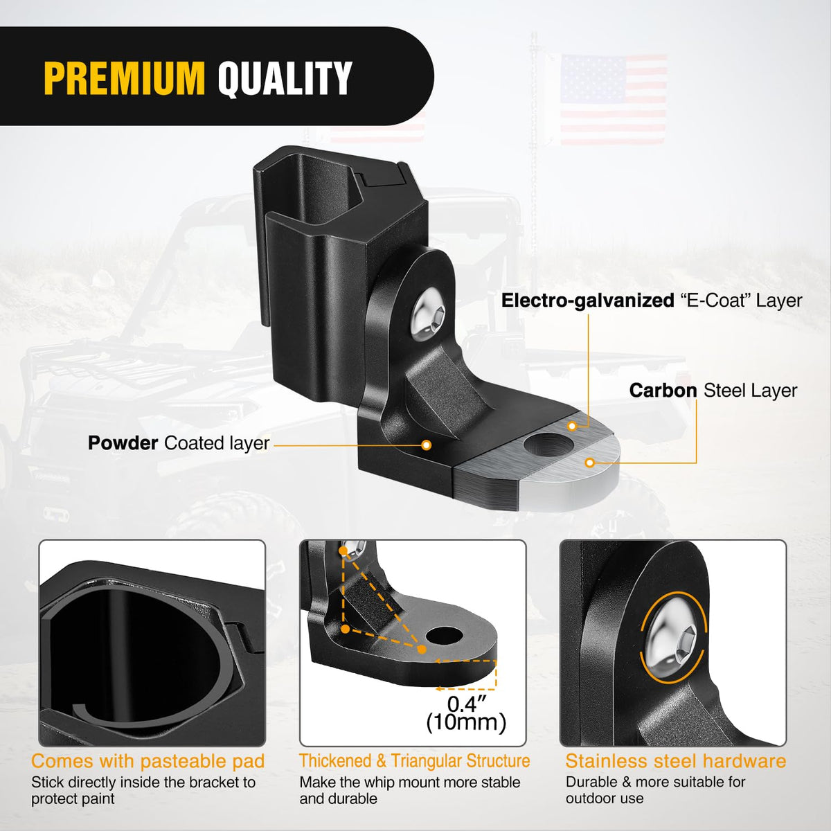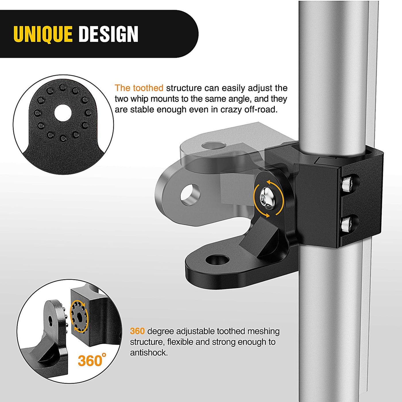 ?360 Dgree Adjustment?We Adopt 360 Degree Adjustable Toothed Meshing Structure, Flexible And Strong Enough To Antishock. In Addition, The Bracket Is Also Built-In Anti-Loosening Nut Inside, More Stable And Not Easy To Fall Off | ?Premium Quality?Precision-Welded From Cast Heavy Duty Steel With Outdoor Powder Coated Finish, Suitable In Hash Environment, Like Salt, Snow, Rain, Storms, Withstand Extreme Weather, Better For Anti-Shock, Heat-Resistant And Anti-Corrosion, Resists Rust And Dirt, Really Durable Tube Mounting Bracket | ?For Pro-Fit Cage Only?The Whip Light Mounting Brackets Will Be Compatible With Polaris Ranger General Can Am Defender Maverick Trail/ Sport And Can Am Commander 2021+, You Can Choose To Install The Utv Flag Mount In A Rear Or Front Pro-Fit Cage | ?Easy To Installation? This Utv Whip Lights Mount Bracket Is Easy To Install, All Hardware Included, Directly Bolt-On Design, No Drilling Or Trimming. And The Mounting Angle Can Be Adjusted, You Can Loosen The Bolt And Change It To The Perfect Angle You Want | ?Multiple Application?The Hole Diameter Size Of The Mounting Bracket Is 12.5Mm(0.5'). You Can Add Anything With A 12Mm Size To This Whip Light Mount. It Can Be Used As A Dune Flag Mount, Whip Light Mount, Chasing Light Mount, Flag Pole Mount, Etc. 2 Years Warranty Honored By Nilight