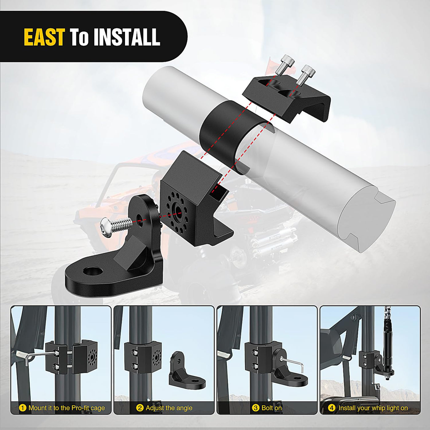 Nilight Utv Whip Light Mount 2Pcs Flag Antenna Mounting Brackets Adjustable For Pro-Fit Cage Compatible With Polaris Ranger General Can Am Defender Commander Maverick Trail/Sport, 2 Years Warranty