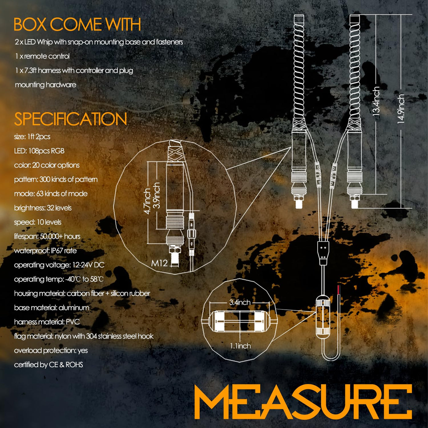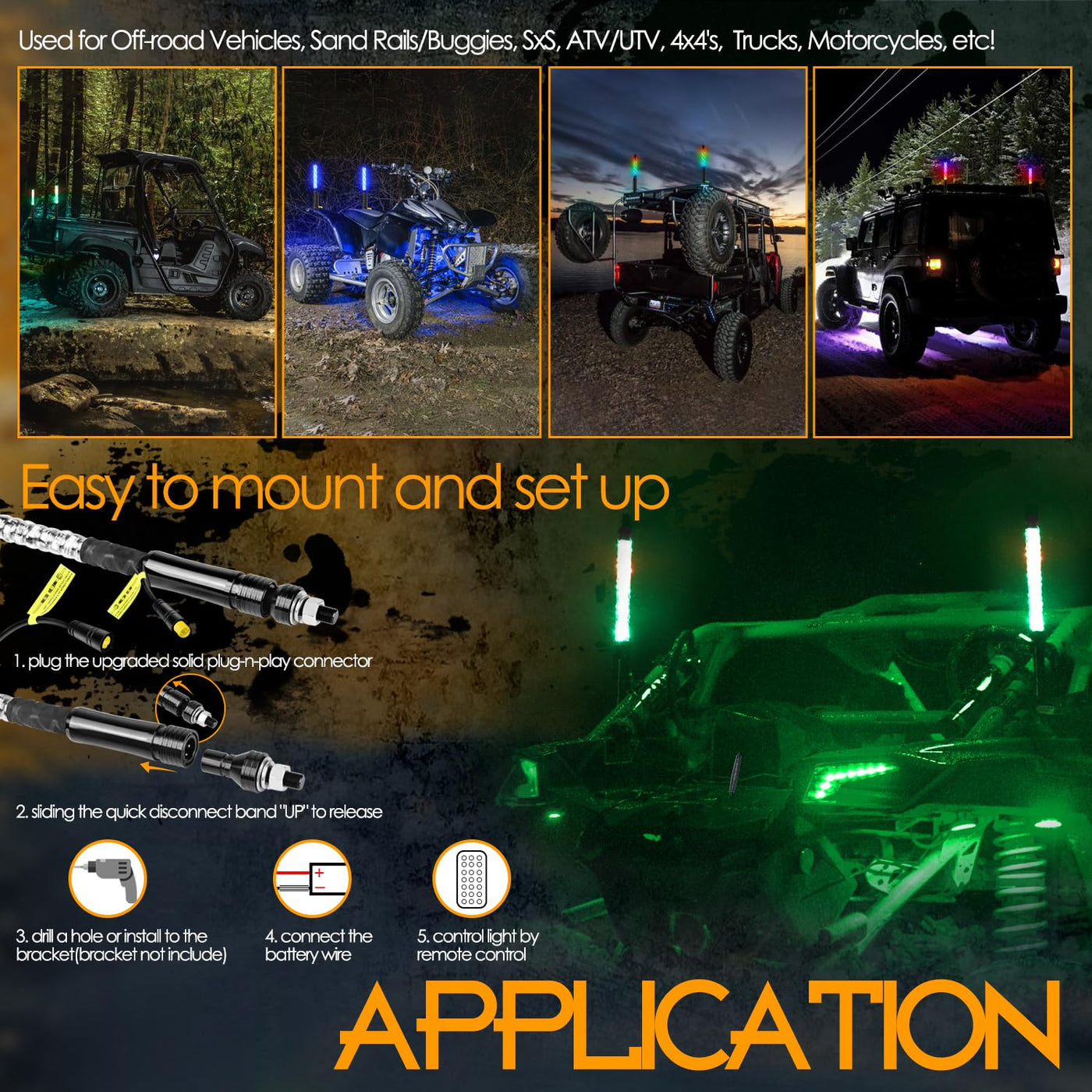 Nirider 2Pcs 1Ft Led Whip Lights With Flag Pole Remote Control Spiral Rgb Chase Light Offroad Warning Lighted Antenna Led Whips